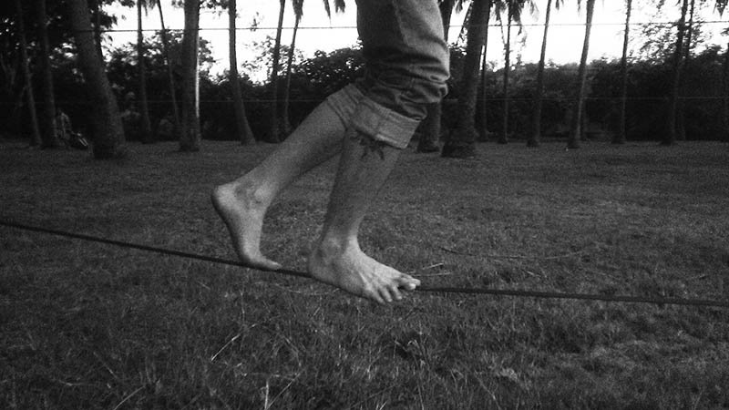 Le funambulisme était à l'honneur à l'occasion de la journée rougail slackline s'est déroulée ce samedi 30 mai 2015 sur le site de la Cocoteraie à la réserve de l'étang Saint-Paul. Au programme de la journée : initiation, démonstration et compétition. Petits, grands, novices et débutants ont pu marcher sur les slacklines (sangles) reliées aux cocotiers.