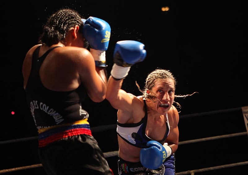 En fin de soirée, l'exitation du public est à son comble. Il faut dire que le prochain combat oppose la Française Myriam Lamare, championne du monde WBC et WBF, venue remettre son titre en jeu, à la Colombienne Lely Luz Florez. Combat intense en perspective au regard du palmarès de la française : 20 combats, 17 victoires, 9 KO, 6 défenses de titres, 6 victoires. Myriam Lamare n'a pas déçu son public. Sous les encouragements de ce dernier, "crochet du droit Myriam", les bras et le visage des deux boxeuses rougissent rapidement sous les coups. Prenant la distance sur son adversaire dès les premiers rounds, redoutable et offensive, Myriam Lamare domine le combat. Elle décroche, aux points, au terme du dixième round, le titre de championne du monde de boxe anglaise.