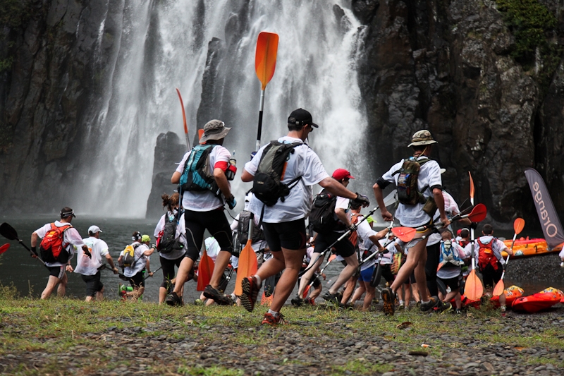 À 7h05, le 6ème Réunion d'Aventures a pris son départ ce dimanche 13 mai au matin à Sainte-Suzanne lorsque Gérard Fusil, organisateur du raid, actionnant la sirène, a lâché la bride à la centaine de compétiteurs qui piaffaient d'impatience au pied de la cascade Niagara. Dans un départ style 24 heures du Mans, soixante kayakistes se sont alors élancés vers leurs embarcations. Pour rappel, les participants doivent couvrir en une semaine le raid de "tous les extrêmes" à pied, en VTT et en kayak en terrain souvent accidenté et difficile d'accès.