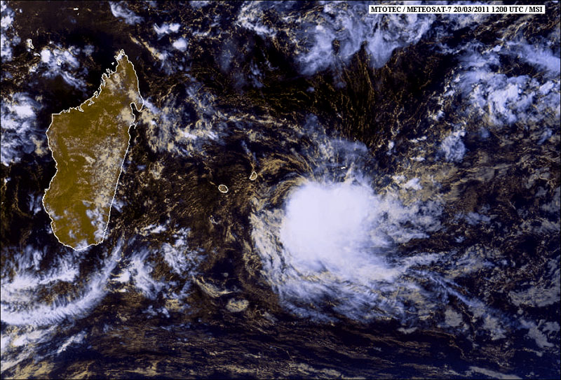 À 16 heures ce dimanche 20 mars 2011, la dépression tropicale ex-Chereno se trouvait à 485 km au large des côtes Est de La Réunion. Elle se situait par les points 21.7 Sud et .4 Est. Elle se déplace à 22 km/h le long d'une trajectoire Ouest-Sud-Ouest. Météo France précise que la dépression ne présente aucun danger pour La Réunion.