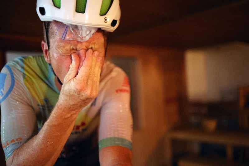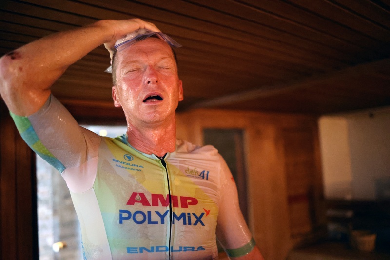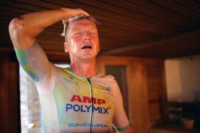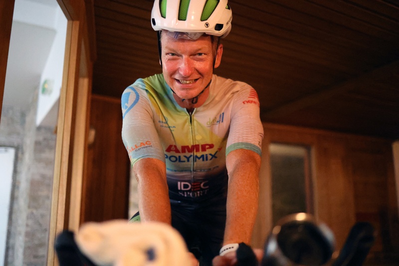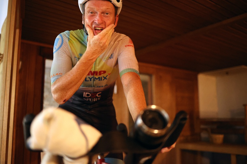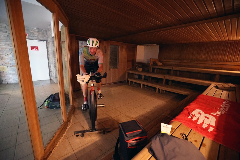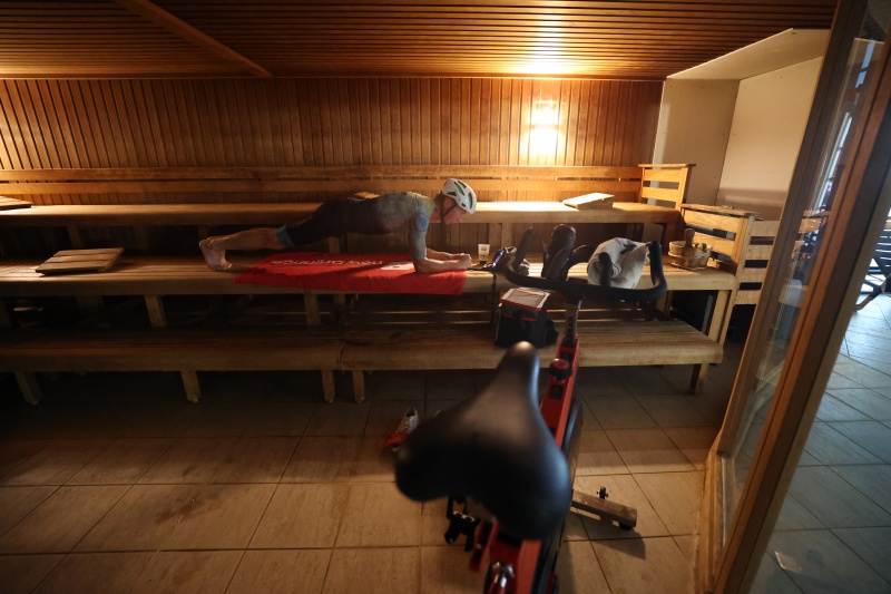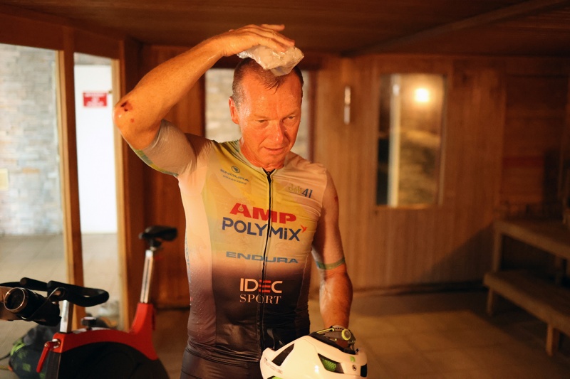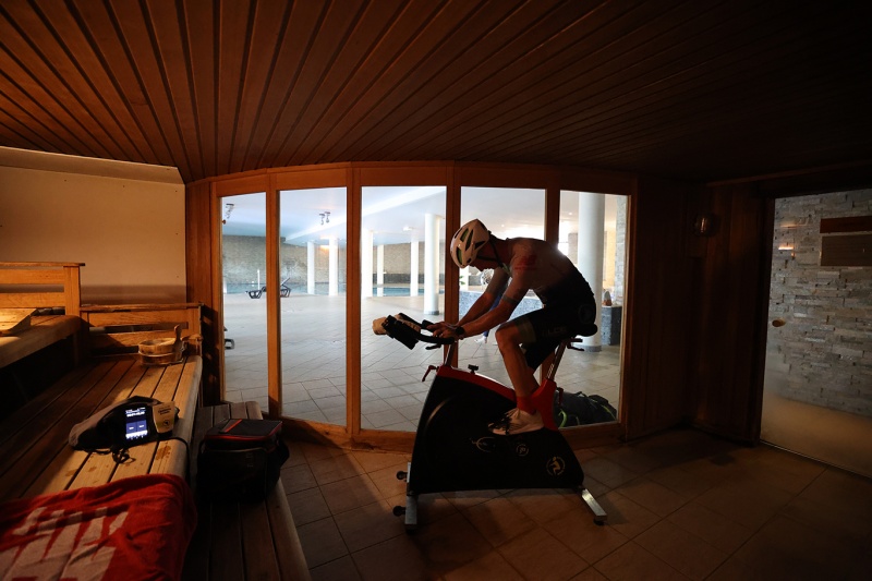 C’est dans la chaleur étouffante du sauna d’Ekwalis à La Possession, que ce jeudi 12 mai, Ludovic Chorgnon s’entraîne ardemment, sous 95 degrés. Une minute de vélo, une minute de renfort musculaire et ainsi de suite pendant près d’une heure et demi. Chaussettes, casques, vélo… tout est mis en place pour qu’il s’entraîne en conditions réelles. Après plus d’une heure d’effort, Ludovic sort du sauna, à peine fatigué. Regardez :