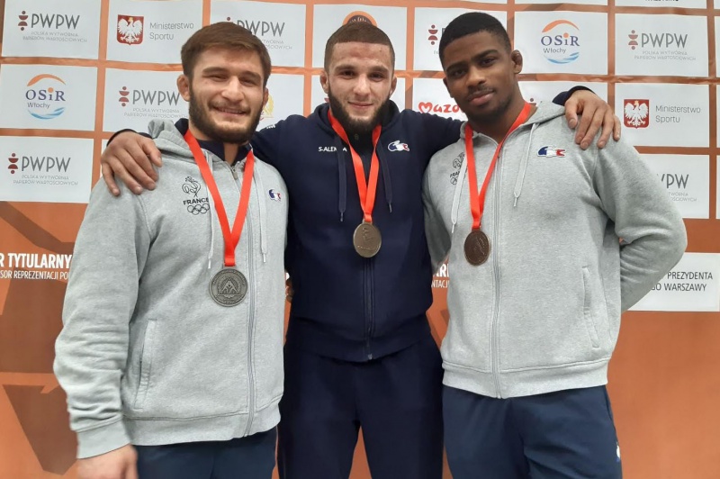 L'équipe de France de lutte libre senior a participé ce mardi 4 novembre 2020 à l'open de Pologne qui s'est tenu à Varsovie. Le sociétaire du lutte club Saint-Joseph Charles Afa réalise une très belle performance en décrochant la médaille de bronze dans la catégorie des moins de 74 kg. Absent en Ukraine le mois dernier en raison d'une douleur à l'épaule il semble avoir retrouvé la forme. Son camarade de club et d'entraînement Valentin Damour réalise fait de bons matchs mais ne classe pas (Photo D.R.)