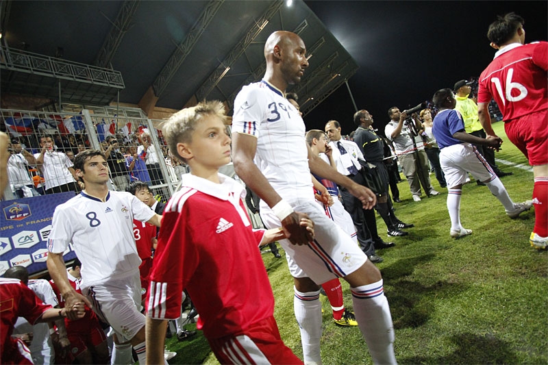 Les joueurs de l'équipe de France ont dominé de bout en bout la première mi-temps du match amical qui les oppose à la Chine ce vendredi 4 juin 2010 au stade Michel Volnay de Saint-Pierre. Ils n'ont pourtant pas concrétisé leur supériorité. La mi-temps a été sifflée sur le score nul de 0 à 0. Pour ce match Raymond Domenech a fait confiance au 11 qui avait joué contre la Tunisie le 30 mai dernier. Dans les tribunes, des supporters survoltés n'ont cessé d'encourager les Français.