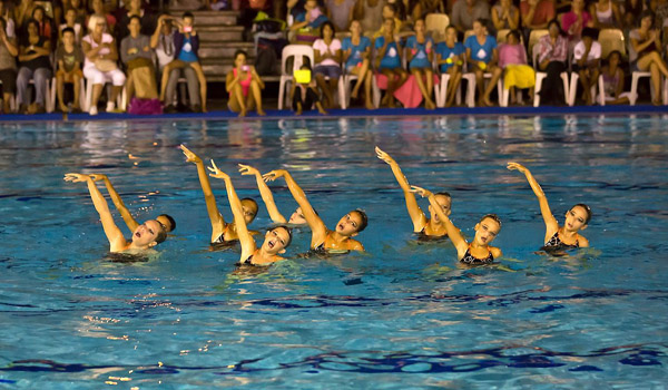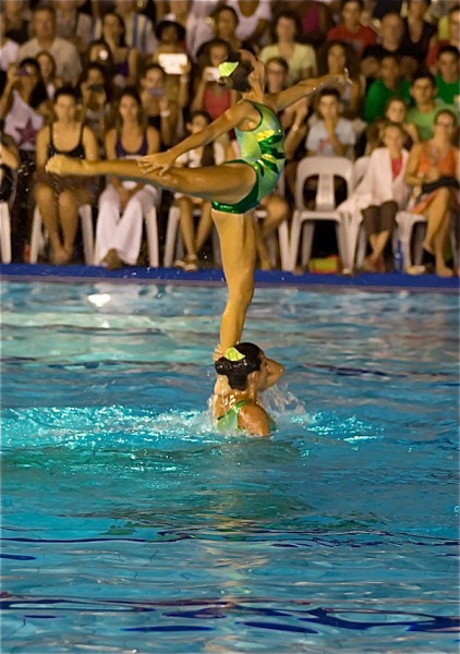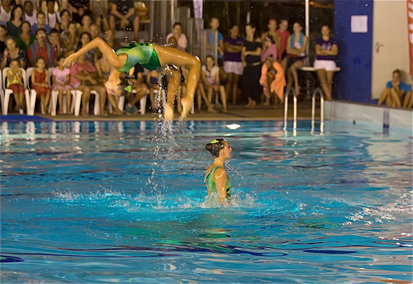 À l'issue de la première journée du meeting international de natation, ce samedi 28 décembre 2013, la piscine de Plateau Caillou a accueilli un gala de natation synchronisée réunissant les clubs des Aquanautes, de l'ONR, de l'ASEC et des Sirènes de l'Ouest. Mais aussi des invitées de marque, puisque les 900 personnes présentes dans les gradins ont pu admirer les arabesques aquatiques de la triple championne du monde Virginie Dedieu, de la championne de France 2013 Sophie Prach, ou encore de Mahina Lhermitte, formée au club des Aquanautes et pensionnaire du pôle espoirs de Sète depuis la rentrée 2013 (Photos Marie Tavenard, entraîneur des Aquanautes).