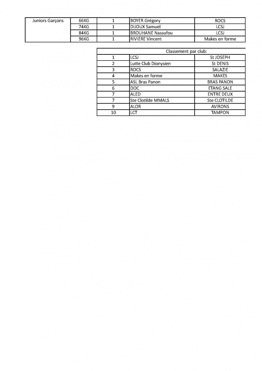 Par ailleurs, trois lutteurs réunionnais, Isabelle Ladeveze (Saint-Joseph), Anthony Técher (Saint-Joseph) et Camille Clain (Saint-Denis), sont actuellement en stage avec l’équipe de France.