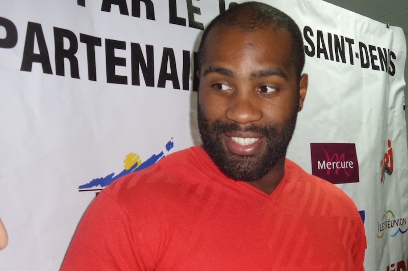 Teddy Riner est arrivé ce dimanche 8 février 2015 à La Réunion. Accueilli au son du maloya par une foule de judokas en herbe, le septuple champion du monde s'est prêté au jeu des selfies et des autographes à l'aéroport Roland Garros de Saint-Denis. Le colosse reste une semaine sur notre île pour recharger les batteries, rencontrer les associations et les clubs locaux.