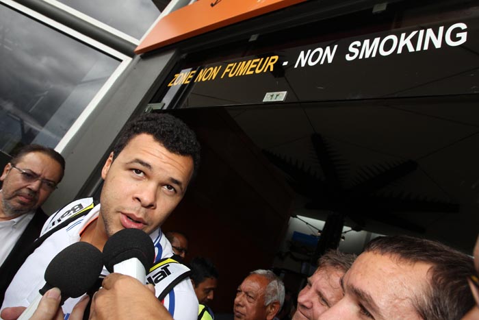Jo-Wilifried Tsonga et Gaël Monfils, deux des meilleurs joueurs de tennis français sont arrivés ce mardi 29 novembre 2011 en matinée à l'aéroport de Roland Garros. Les deux hommes sont à La Réunion pour un match d'exhibition qui se déroulera à Saint-Pierre au stade Michel Volnay, dont une partie a été transformée en court de tennis pour l'occasion. Durant leur séjour sur l'île, ils auront également l'opportunité de se reposer un peu après une saison bien remplie et la participation aux plus grands tournois ATP.