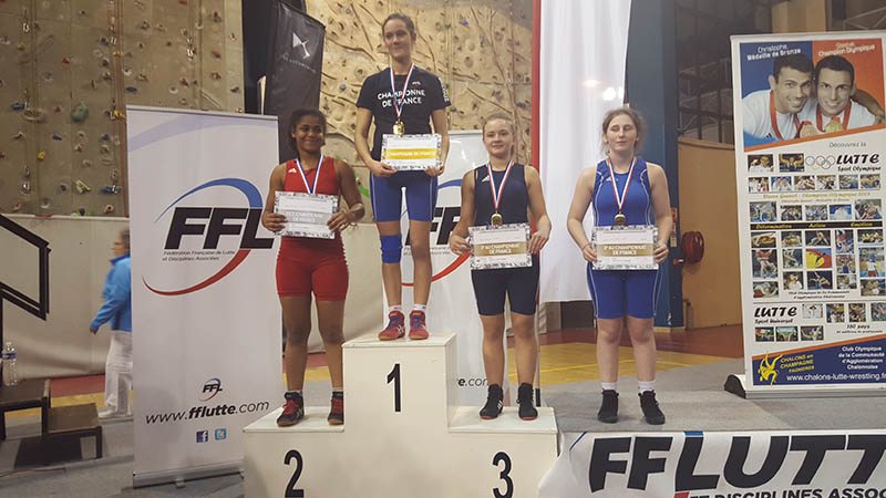 Une lutteuse de La Réunion ont été sacrée championne de France ce samedi 19 mars 2016 à l'issue de championnats de France de lutte féminine pour les minimes, cadettes et juniors qui ont eu lieu à Chalons en Métropole. Les sportives ont également décroché deux médailles d'argent et trois médailles de bronze.