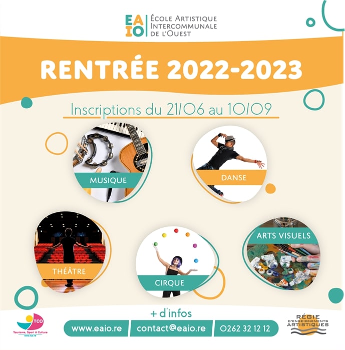 Les inscriptions pour la rentrée 2022/2023 à l'École Artistique Intercommunale de l'Ouest (EAIO) continuent jusqu'au samedi 10 septembre 2022. Arts visuels, musique, danse, théâtre, cirque... Laissez-vous bercer par votre créativité ! Il reste quelques places dans certains programmes proposés : initiation à la broderie, ateliers de dessin, hip-hop, " Maloya dobout " ou encore MAO (Musique Assistée par Ordinateur). Nous publions ci-dessous le communiqué du TCO. (Photo d'illustration : rb/www.ipreunion.com) Ne tardez plus, inscrivez-vous vite !