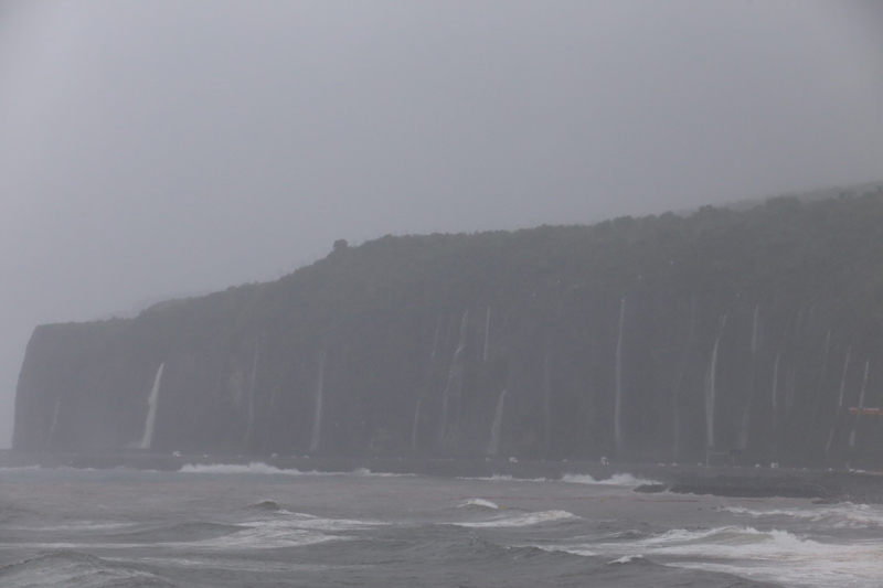 Les ravines Divon et Bernica sont en crue, les radiers son submergés. La route est également barrée au niveau de la Grande Fontaine. De nombreuses cascades coulent de la falaise.