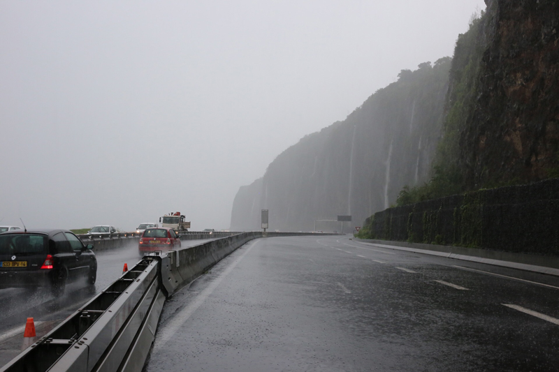 RN1A Cap Lahoussaye à St Paul, en raison de plusieurs éboulis et de l’inondation de la chaussée, route fermée dans les deux sens jusqu’à nouvel ordre.