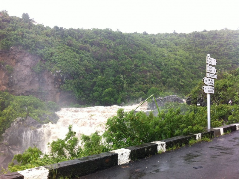 La tempête tropicale Haliba passe ce lundi 9 mars 2015 au plus près de La Réunion. A Trois-Bassins, les fortes pluies ont considérablement augmenté le débit de la ravine en crue. La vidéo a été enregistrée à fond Barrage vers 15 heures. Merci à Judi Aure.