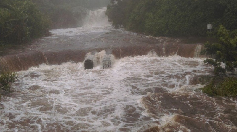 La tempête tropicale Haliba passe au plus près de La Réunion ce lundi 9 mars 2015. A Saint-Gilles les Hauts, au niveau la route Hubert Delisle, la ravine est en crue. Merci à Christopher pour la vidéo.