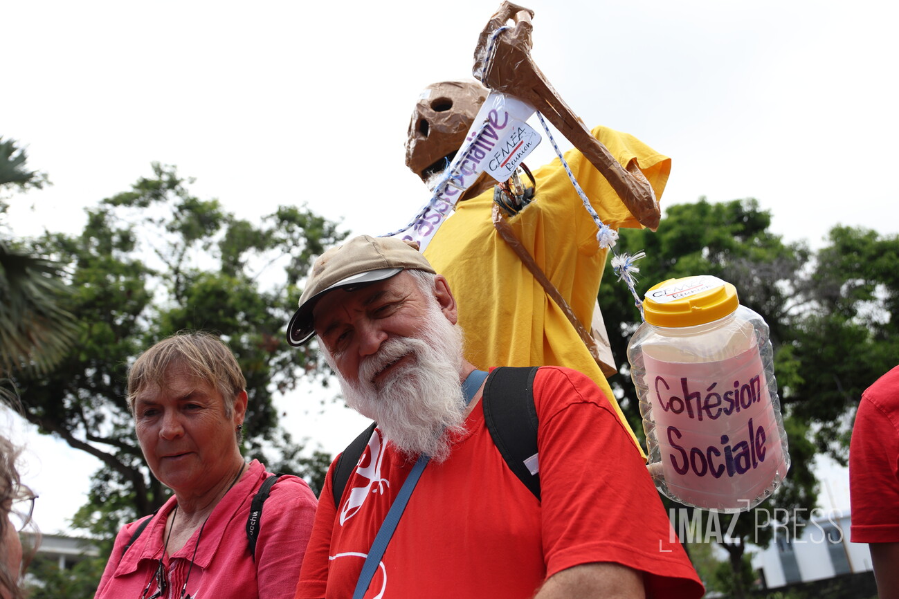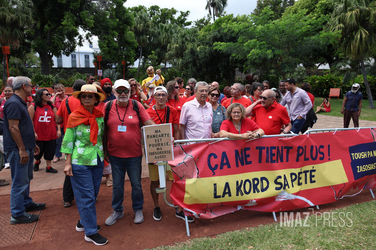 "Ça ne tiens plus, la kord sa pété", scandent les associations ce samedi 11 octobre 2025 devant la préfecture de Saint-Denis. En 15 ans, la part des subventions dans le budget global des associations a diminué de 41%. Le mouvement associatif de La Réunion alerte face à la baisse des budgets et à la raréfaction des subventions, mettant "en péril la vie associative". Sans ces aides, près de la moitié des associations de La Réunion risquent de devoir réduire leur activité (Photos : dc/www.imazpress.com)