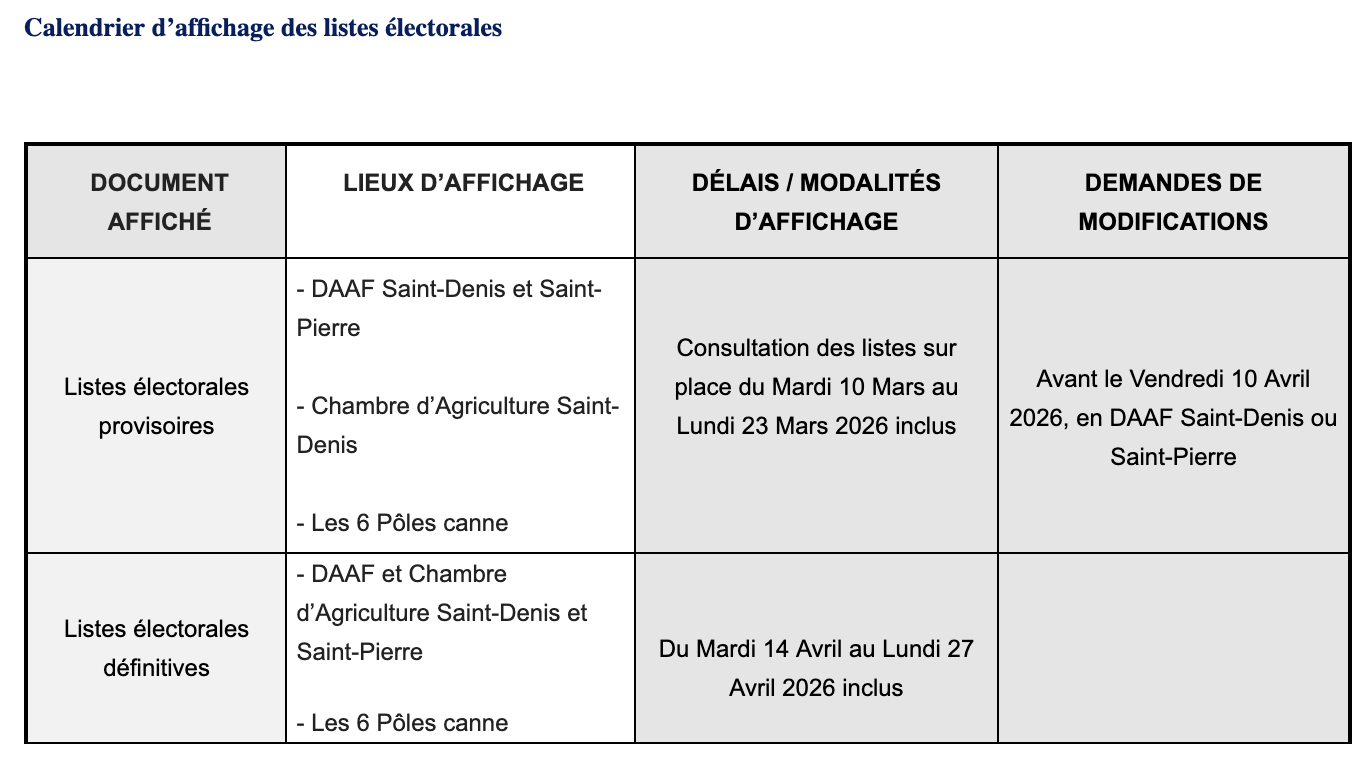 Organisés tous les cinq ans, ces élections se déroulent sous l’égide du comité paritaire de la canne et du sucre, en partenariat avec la direction de l’alimentation, de l’agriculture et de la forêt de La Réunion (DAAF) et le centre technique interprofessionnel de la canne et du sucre (CTICS). Ce scrutin permet de déterminer la représentation des planteurs de canne au sein des instances interprofessionnelles de la filière canne-sucre.