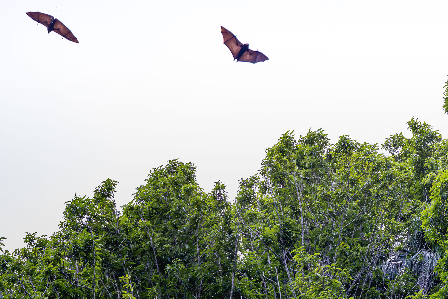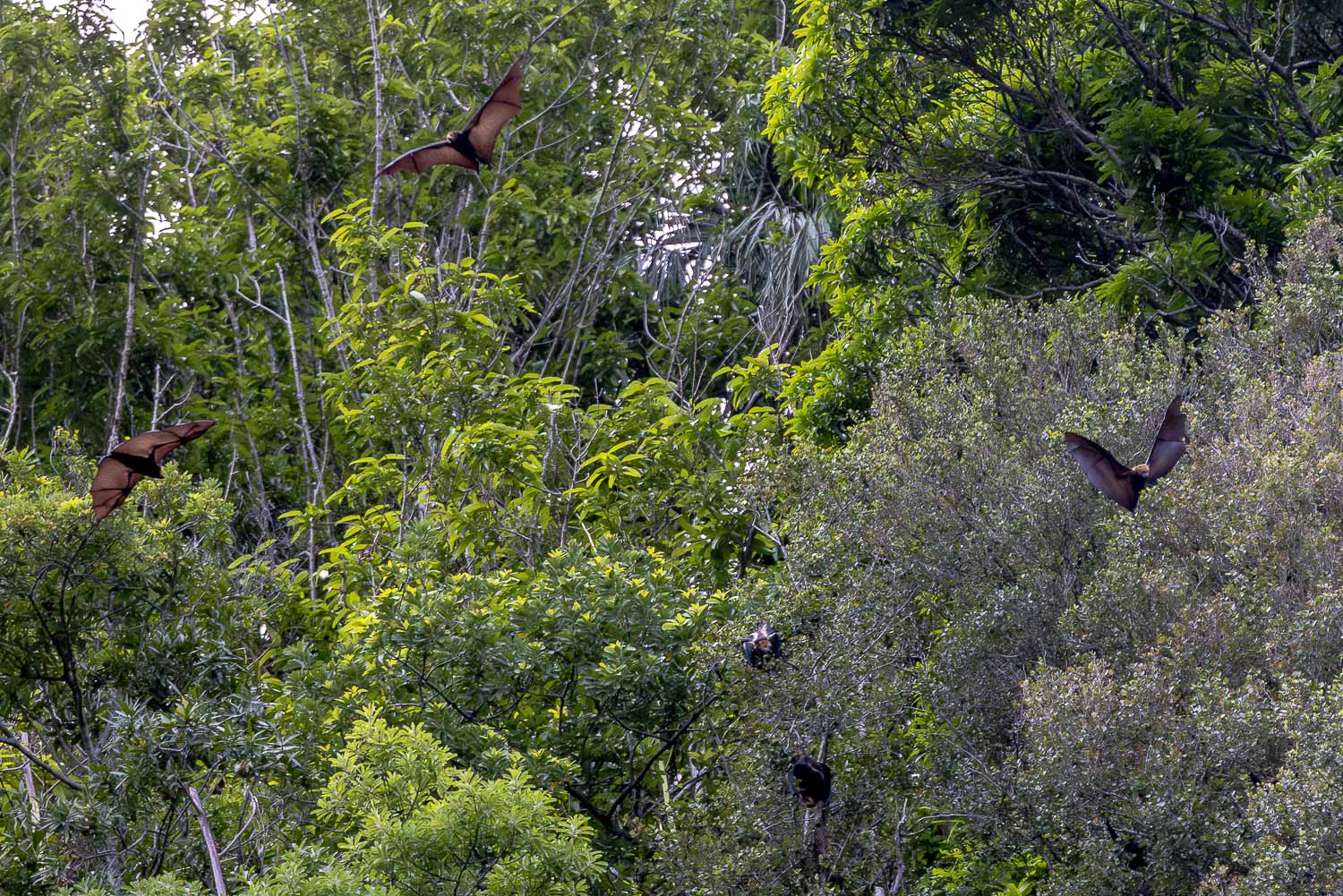 Les roussettes s'apprĂŞtaient visiblement Ă  aller dormir dans les arbres.