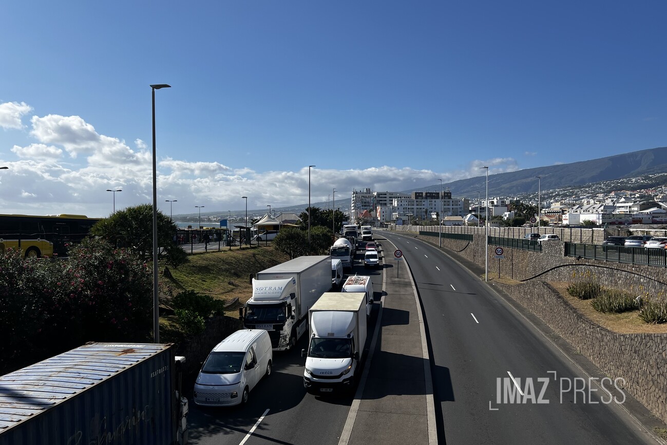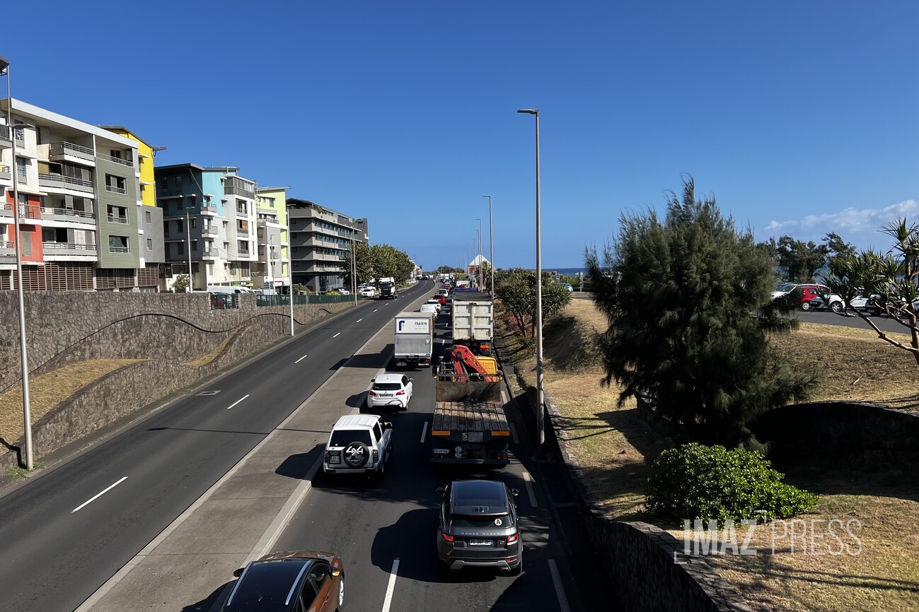 (Actualisé) Sur la RN1 à La Possession, un accident s’est produit dans le secteur de la Ravine à Marquet entre un camion et une fourgonette, dans le sens nord/sud vers 6h47. La voie de gauche et la voie de droite ont été impactées. Les véhicules accidentés ont été retirés (Photos : vs/www.imazpress.com)