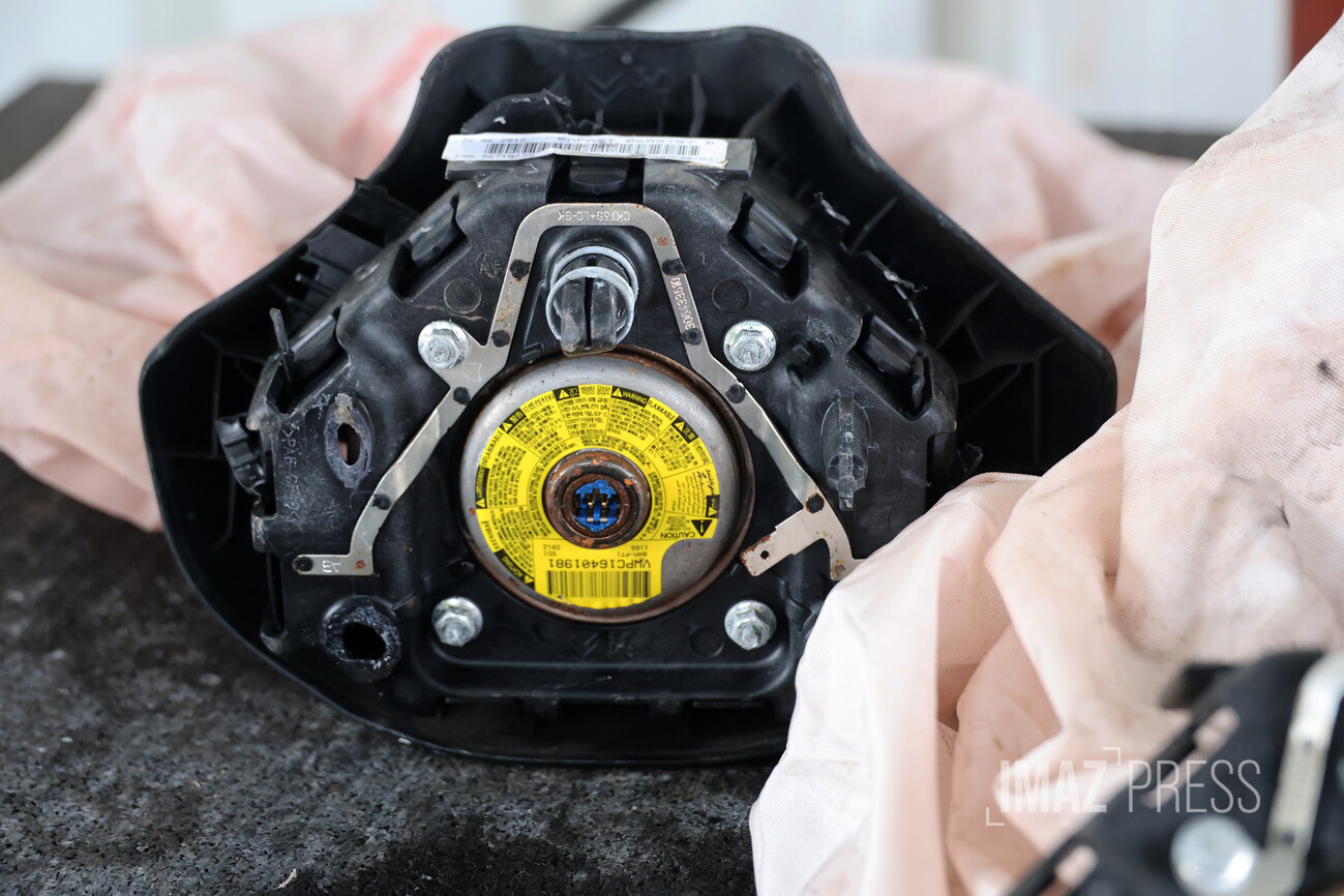La campagne de rappel concernant le scandale des airbags Takata est loin d’être terminée. En cette fin d'années 2025, le scandale persiste avec de nouvelles campagnes de rappel pour divers modèles de voitures. Au 30 novembre 2025 à La Réunion, 20.416 véhicules restent encore à traiter, "44.115 véhicules ont été contrôlés (dont 16.698 depuis la campagne Stop Drive) indique la préfecture à Imaz Press. Des dispositifs défectueux, qu’il convient désormais de détruire. Un airbag Takata ne se jette pas comme une pièce ordinaire. Il contient une charge explosive qu’il faut traiter avec précaution (Photos : sly/www.imazpress.com)