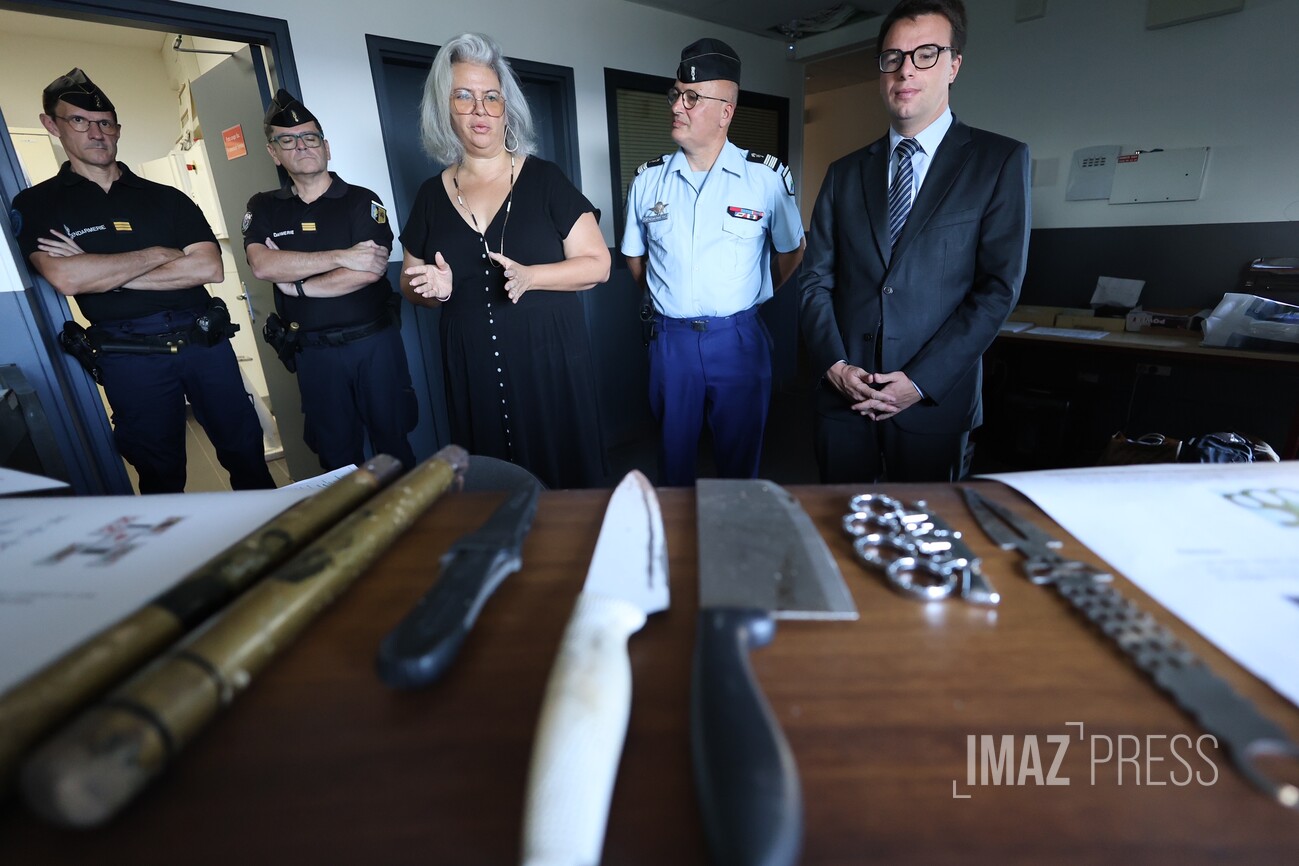Ce mercredi 26 novembre 2025, c'est au cœur de la gendarmerie de Sainte-Marie que l'État a présenté la nouvelle réglementation sur les armes blanches. Une règlementation plus stricte qui encadre la détention, le port et le transport des armes blanches. La vente d'armes blanches est désormais interdites aux mineurs (Photos : sly/www.imazpress.com)