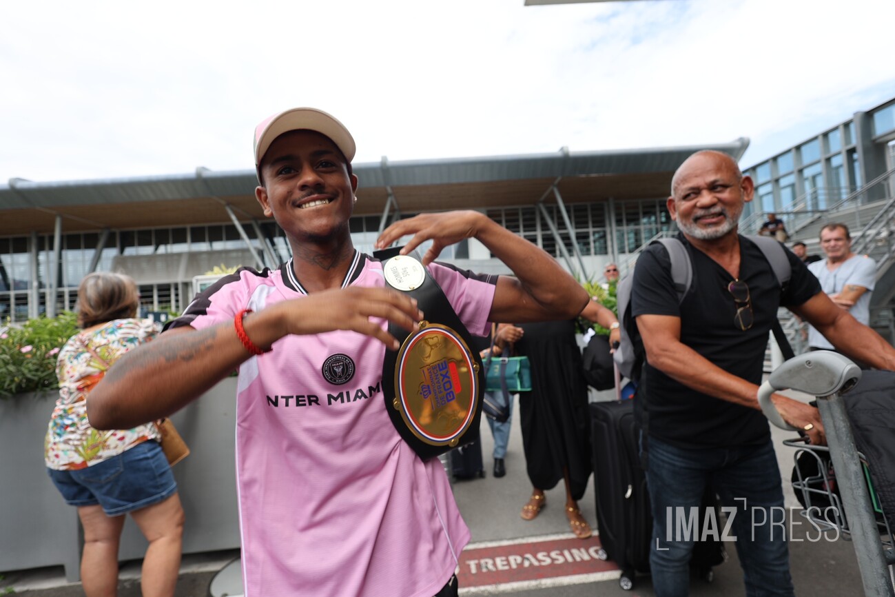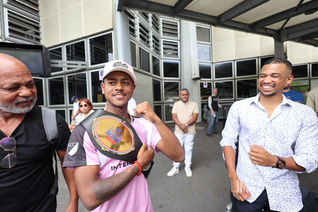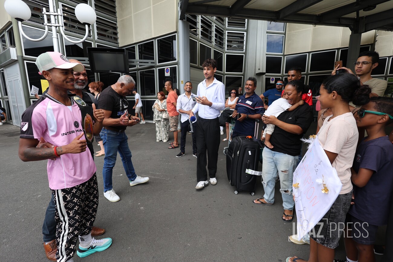 Larry Tevanne est arrivé sous les acclamations à La Réunion ce mardi 27 janvier 2026. Le jeune Réunionnais a été sacré grand champion de France de boxe amateur Élites dans la catégorie -50 kg, lors de la compétition qui s'est déroulée le samedi 24 janvier 2026 à La Rochelle. Le boxeur de 21 ans remporte son premier titre national dans cette catégorie des super-légers, face au toulousain Zakarya Bouhaouk (Photos : sly/www.imazpress.com)