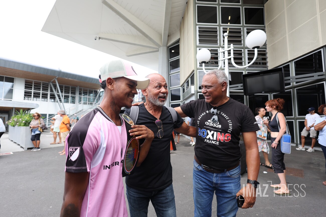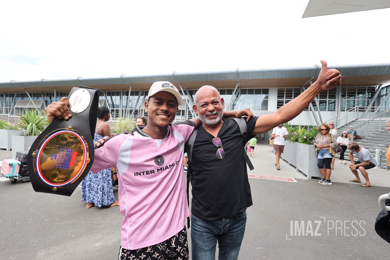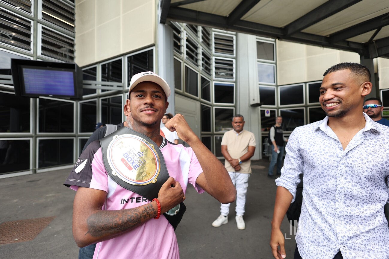 Larry Tevanne est arrivé sous les acclamations à La Réunion ce mardi 27 janvier 2026. Le jeune Réunionnais a été sacré grand champion de France de boxe amateur Élites dans la catégorie -50 kg, lors de la compétition qui s'est déroulée le samedi 24 janvier 2026 à La Rochelle. Le boxeur de 21 ans remporte son premier titre national dans cette catégorie des super-légers, face au toulousain Zakarya Bouhaouk (Photos : sly/www.imazpress.com)