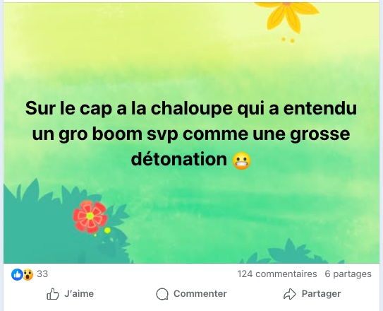 Sur les réseaux sociaux, les Réunionnais se demandent ce qu'il s'est passé peu avant 18 h. Ils expliquent avoir entendu un bruit sourd, et décrivent une détonation qui les aurait surpris.