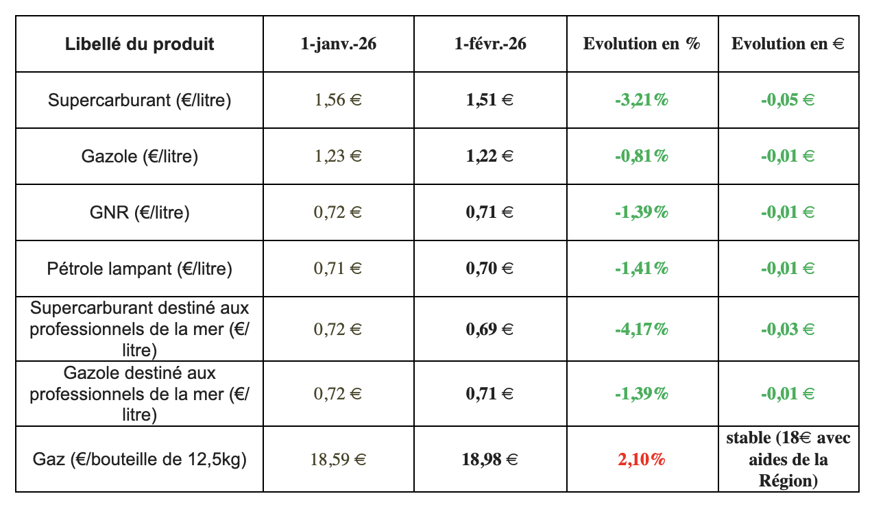 Ainsi, à compter du 1er février 2026, les prix maximums applicables à La Réunion sont fixés comme suit :