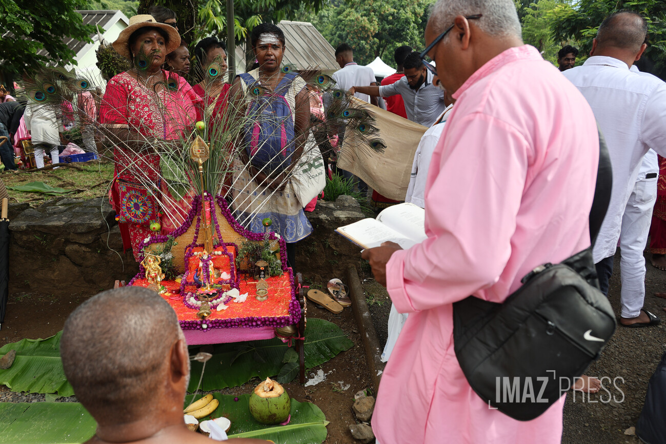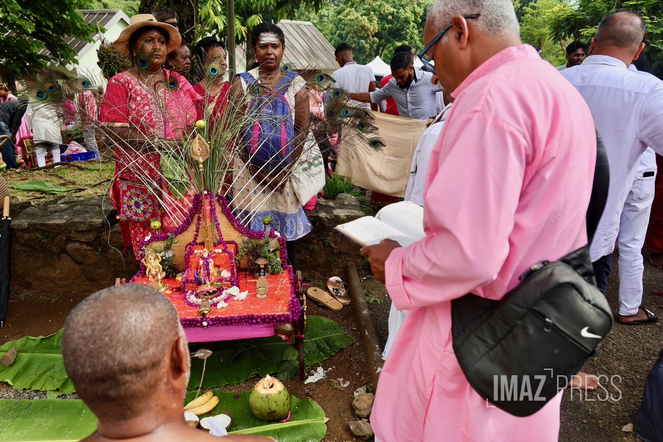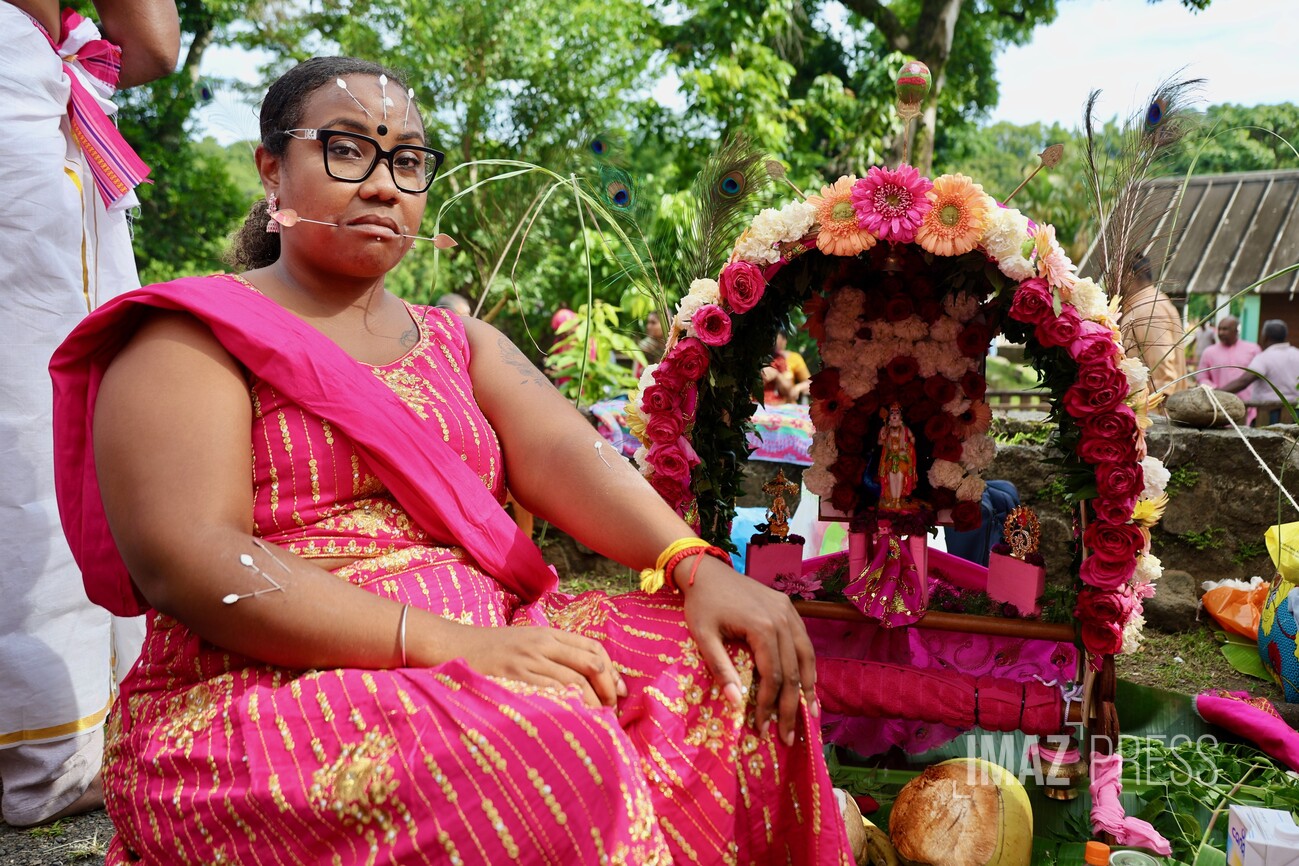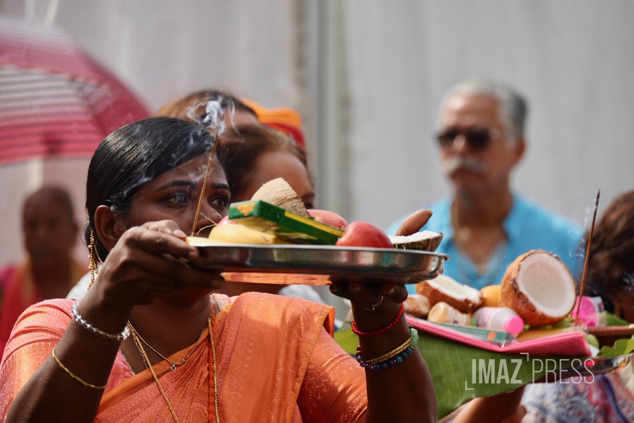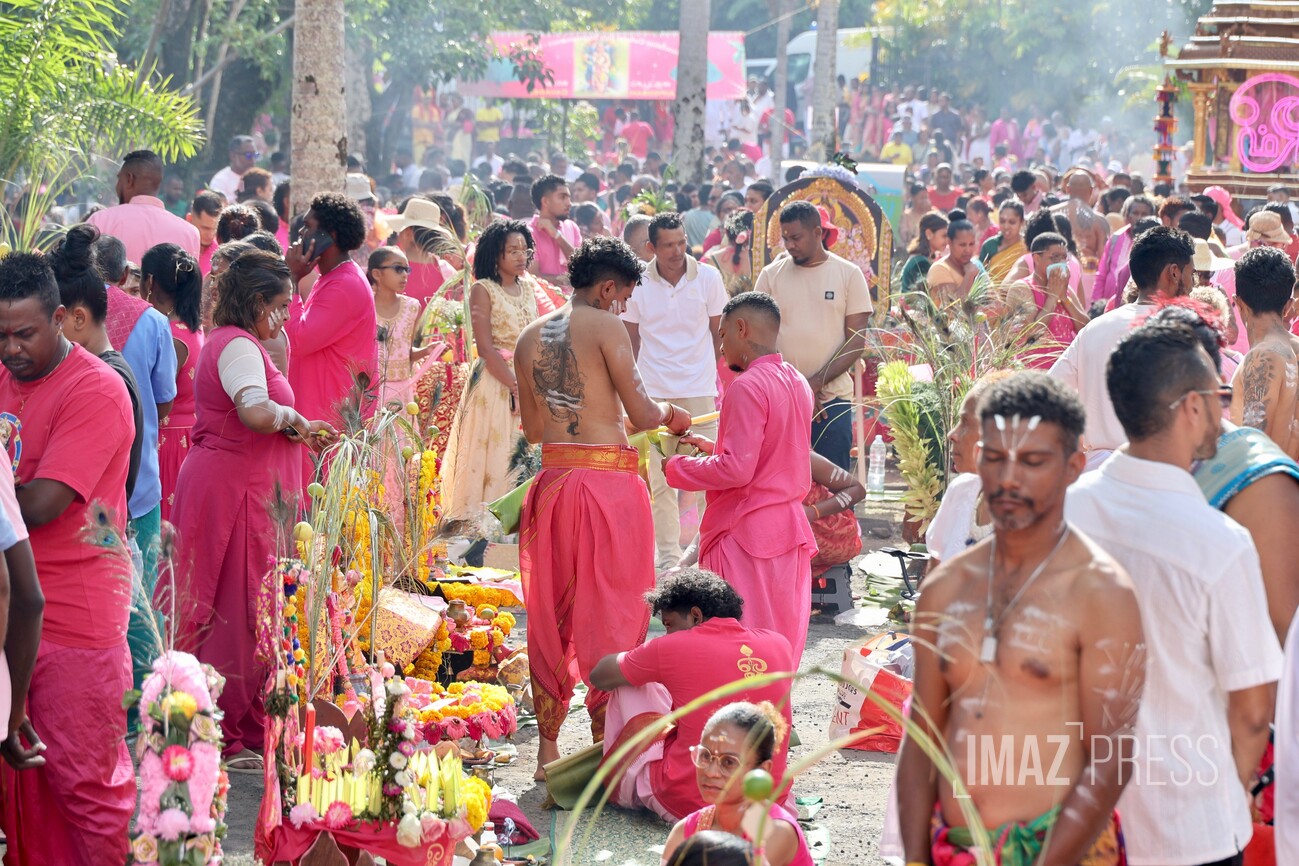 Le jour du Cavadee est célébré tous les ans dans la religion tamoule, rassemblant des pèlerins, souvent vêtus de rose ou de jaune, les couleurs sacrées de Mourouga.