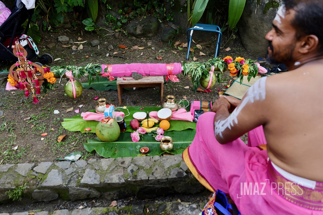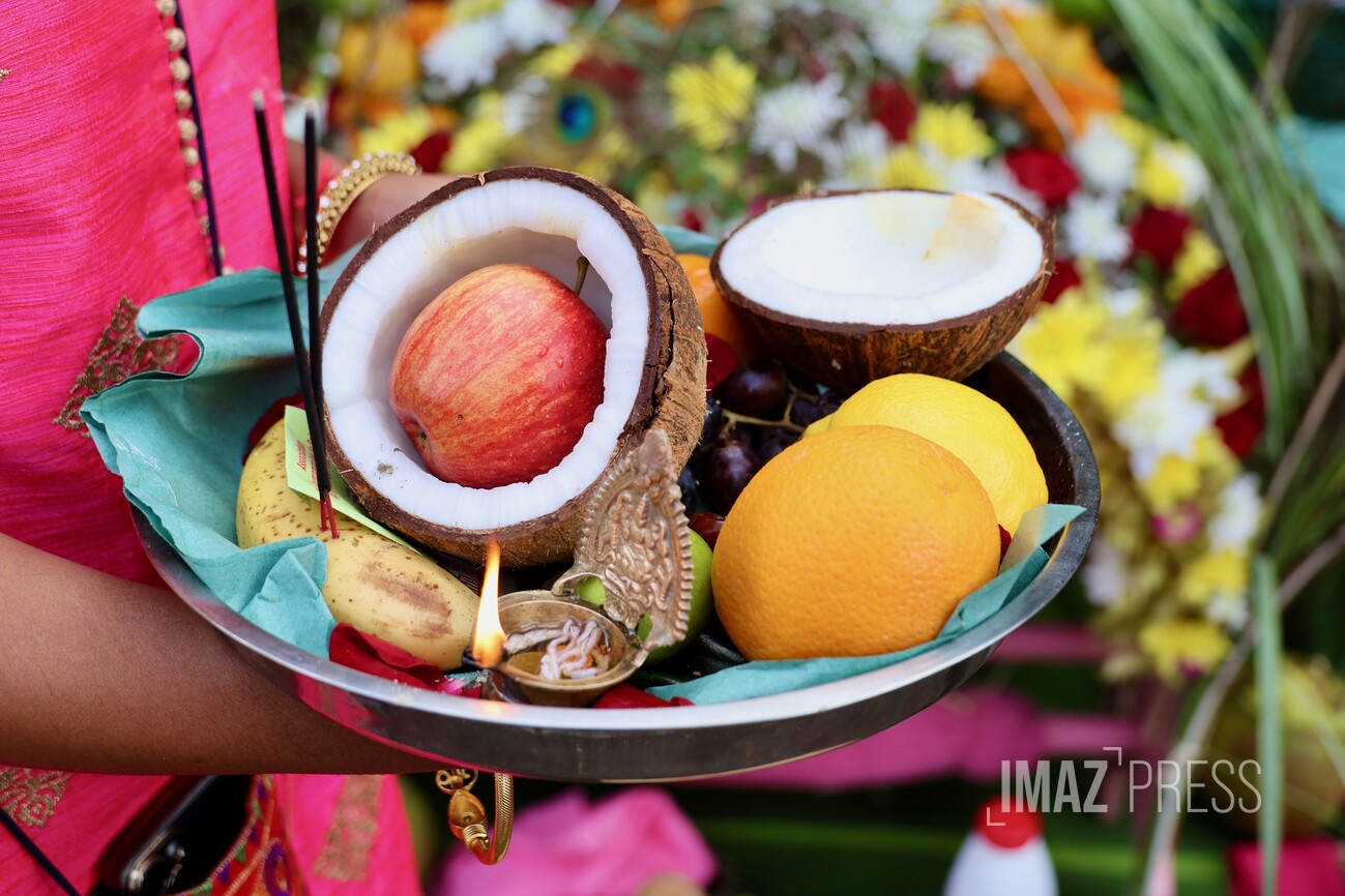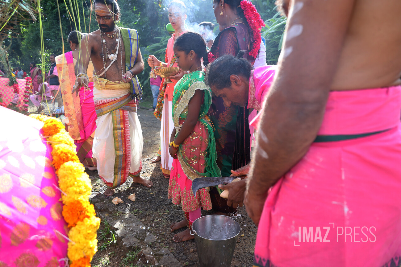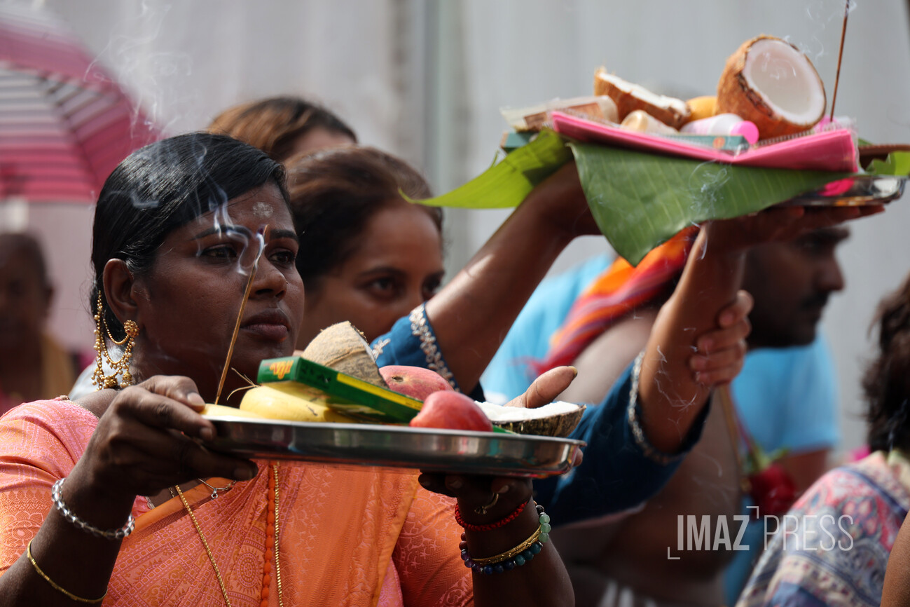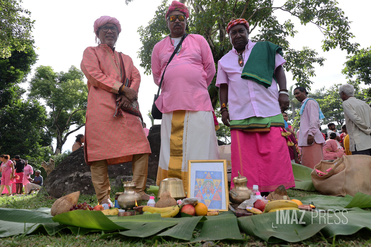 Le jour du Cavadee est célébré tous les ans dans la religion tamoule, rassemblant des pèlerins, souvent vêtus de rose ou de jaune, les couleurs sacrées de Mourouga.