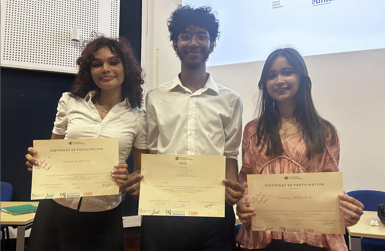 À l’issue de la finale, c’est Matys Hoareau, élève du lycée Mahatma Gandhi et originaire de Saint-André, qui a été désigné lauréat. Il représentera La Réunion lors du concours national organisé par la fédération Des Territoires aux Grandes Écoles, le 30 mai prochain à Paris.