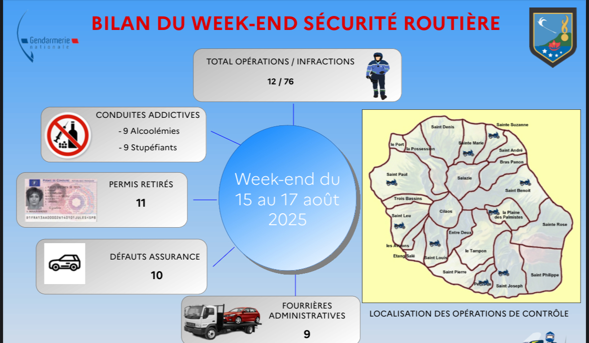 La police a effectué 15 opérations de contrôles routiers au cours de ce week-end du vendredi 15 au dimanche 17 août 2025. Ils ont relevé 172 infractions. Les gendarmes ont relevé 76 infractions et ont retiré 11 permis (Photo Sly/www.imazpress.com)
