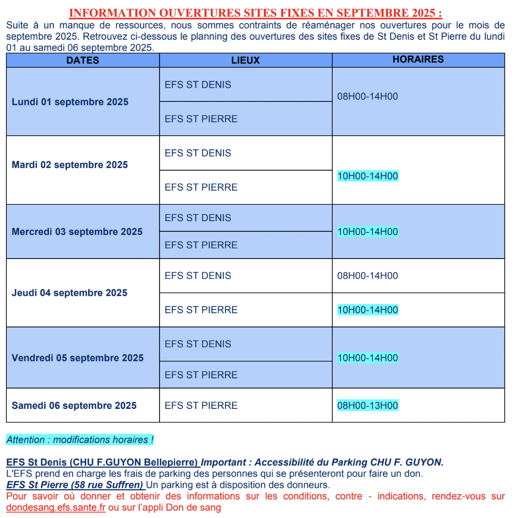 L’Établissement Français du Sang La Réunion- Océan Indien vous informe des collectes de sang organisées jusqu'au vendredi 05 septembre 2025 (Photo : sly/www.imazpress.com)