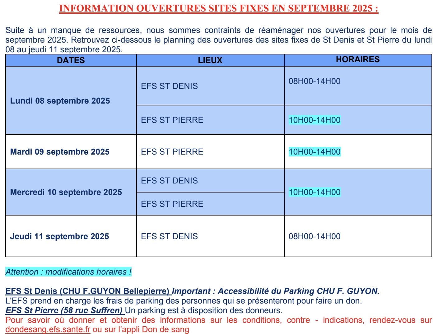 L’Établissement Français du Sang La Réunion- Océan Indien vous informe des collectes de sang organisées du lundi 15 septembre au dimanche 21 septembre 2025 (Photo : sly/www.imazpress.com)