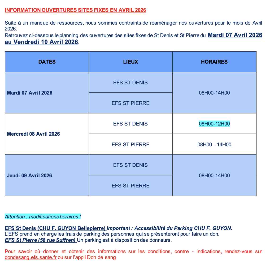 L’Établissement Français du Sang La Réunion-Océan Indien vous informe des collectes de sang organisées mardi 7 avril 2026 au vendredi 10 avril 2026 (Photo : Stephan Laï-Yu/www.imazpress.com)