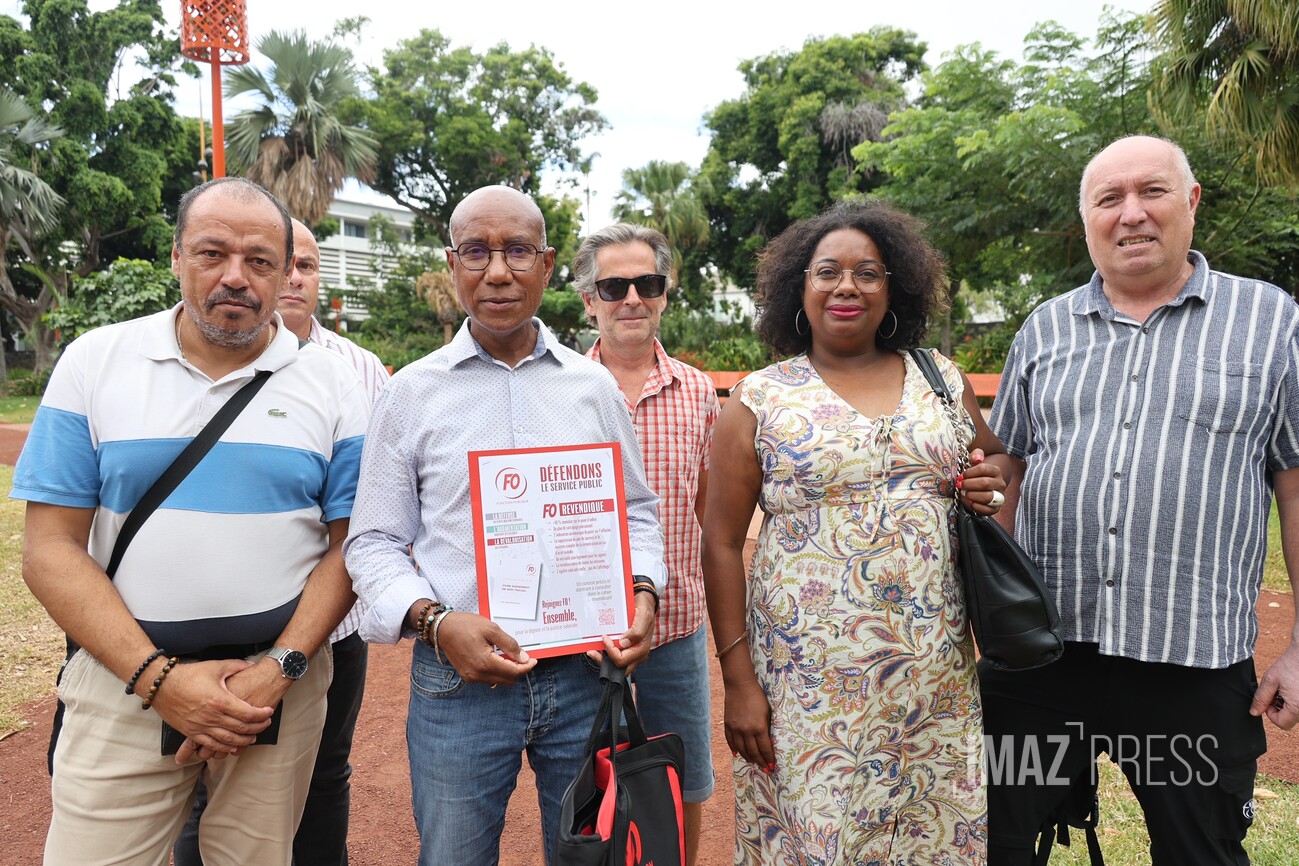 À l’occasion des débats sur les projets de loi de finances (PLF) et de financement de la Sécurité sociale (PLFSS) pour 2026 à l’Assemblée nationale, les délégués FO de la Fonction publique ont déposé une motion auprès du préfet de La Réunion, Patrice Latron. Le syndicat veut rappeler l’urgence d’un véritable plan de revalorisation des rémunérations et des carrières dans la Fonction publique, notamment à La Réunion. Un cahier revendicatif a été remis au préfet (Photo sly/www.imazpress.com)