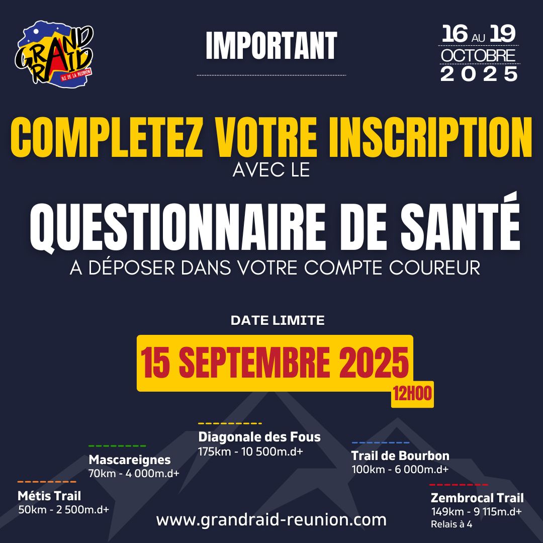 - Coureurs, remplissez le questionnaire de santé pour le Grand Raid -