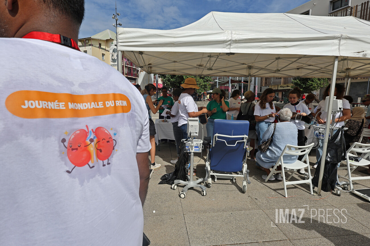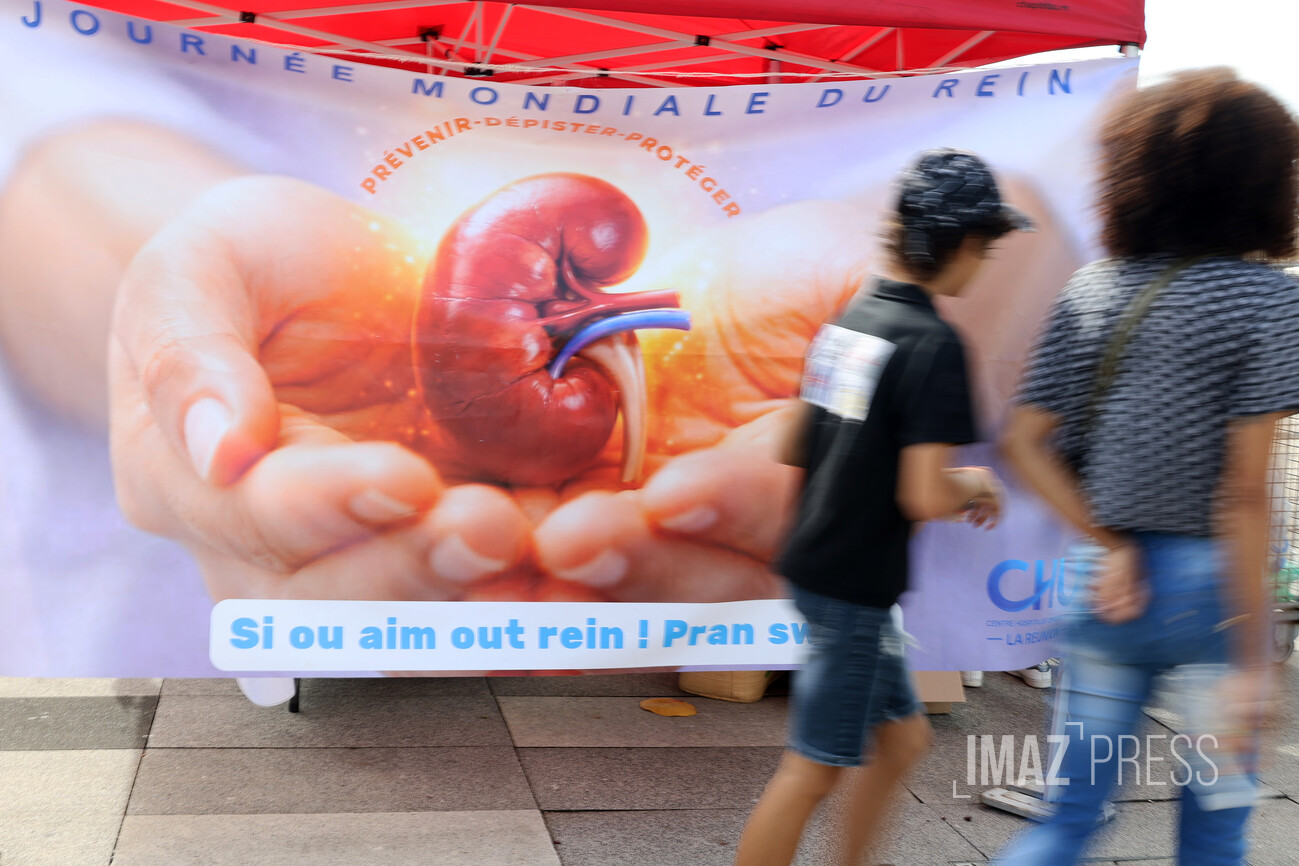 À l’occasion de la Journée mondiale du rein ce jeudi 12 mars 2026, les équipes du service néphrologie sud et nord du Centre hospitalier universitaire de La Réunion organisent une journée de sensibilisation, de prévention et de dépistage ouverte à tous sur la place Paul Vergès à Saint-Denis. L'occasion pour les Réunionnais qui le souhaitent de bénéficier d'une consultation sans rendez-vous et d'informations sur les maladies rénales. À La Réunion, 1.900 personnes souffrent d'insuffisance rénale, 500 patients sont en attente d'une greffe (Photos : Stephan Laï-Yu/www.imazpress.com)