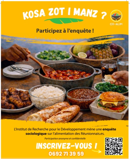 Afin de répondre aux défis de la transition nutritionnelle, sanitaire et environnementale à La Réunion, l’Institut de recherche pour le développement (IRD) lance une enquête OR-ALIM (Observation et recherche sur l’alimentation) auprès des Réunionnais. La période d'enquête est ouverte de mars à juillet 2026 à La Réunion. Il s’agit d’une recherche sociologique à grande échelle sur l’alimentation locale, menée sous forme d’entretiens en face à face par des enquêteurs. Plus d'information ci-dessous. (Photo : Stephan Laï-Yu/www.imazpress.com)