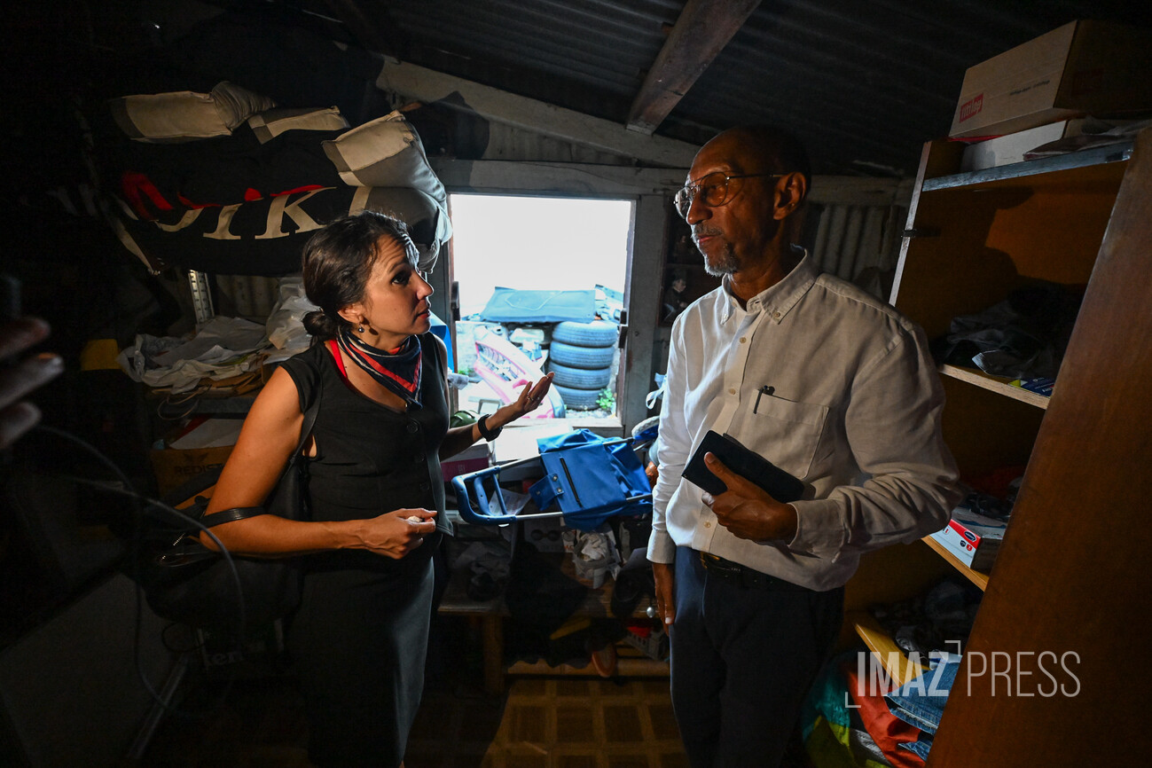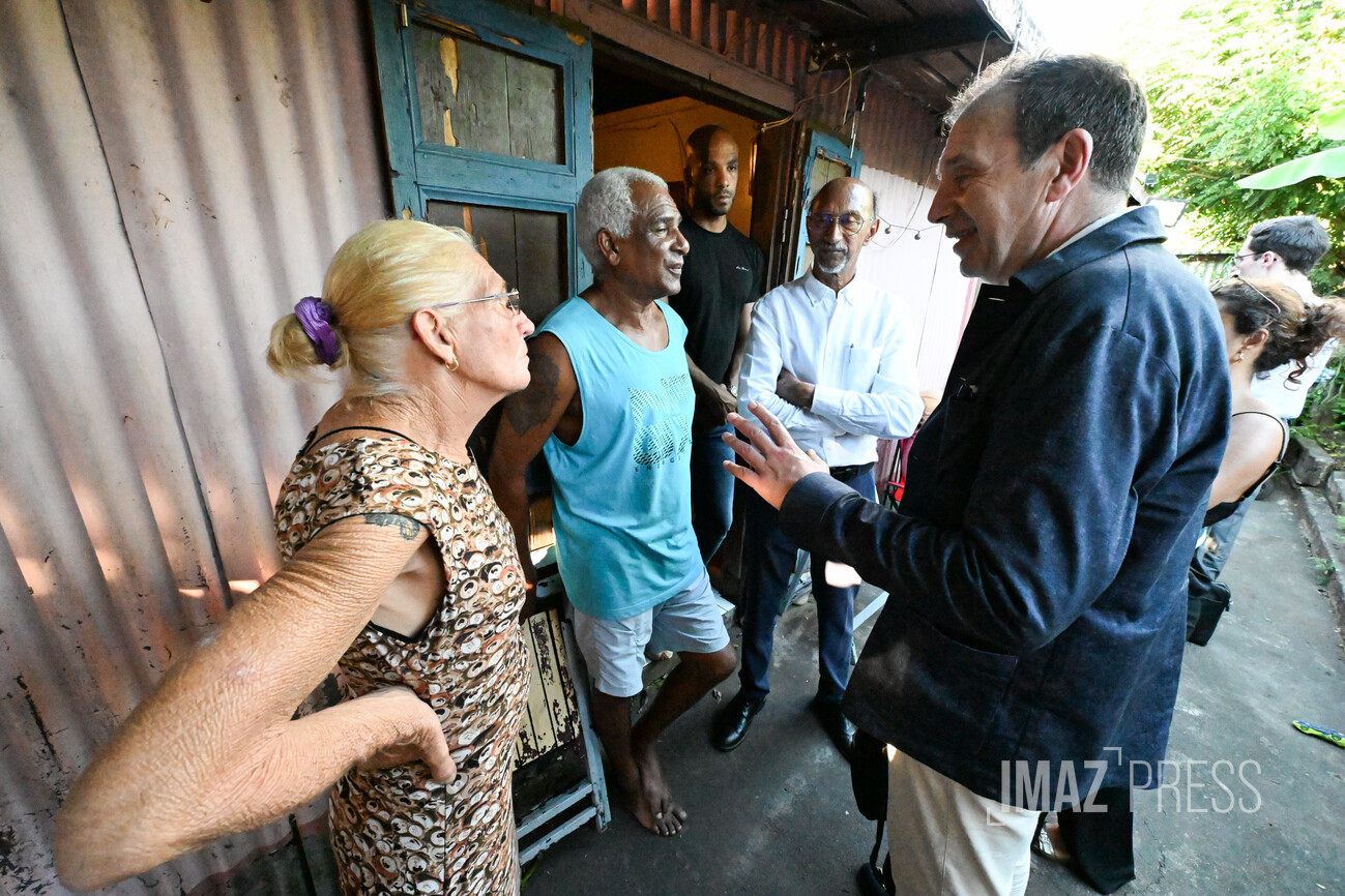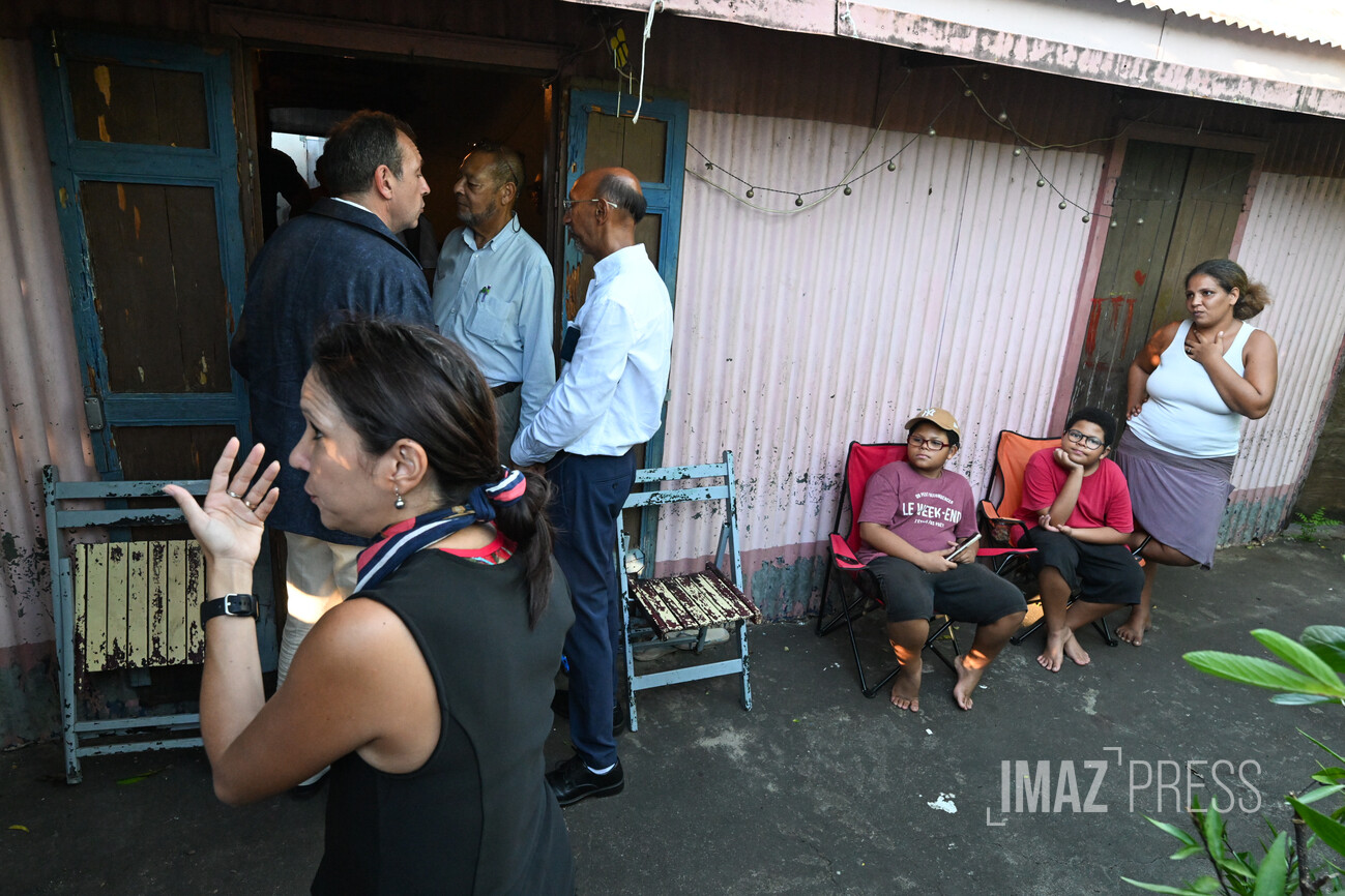 La délégation s'est ensuite rendue rue de la Boulangerie, visiter une maison en situation d'insalubrité. "Il ne s'agissait pas là de logement social mais c'était important de visiter ce type d'habitat pour rendre compte de la situation", assure Karine Lebon. "Dans cette case en tôle, on a pu constater tous les problèmes que cela pose : électricité, normes... insalubrité de manière générale".