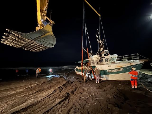 Dans la journée du 5 août, une opération technique d’une grande complexité a été engagée sous la coordination de Sébastien Ysard, directeur des services techniques de Réunimer. Grâce à la réactivité et à l’implication de partenaires locaux, le navire a été déséchoué, levé et transporté par la route jusqu’au Port Ouest, où il a pu être mis en sécurité aux alentours de minuit.