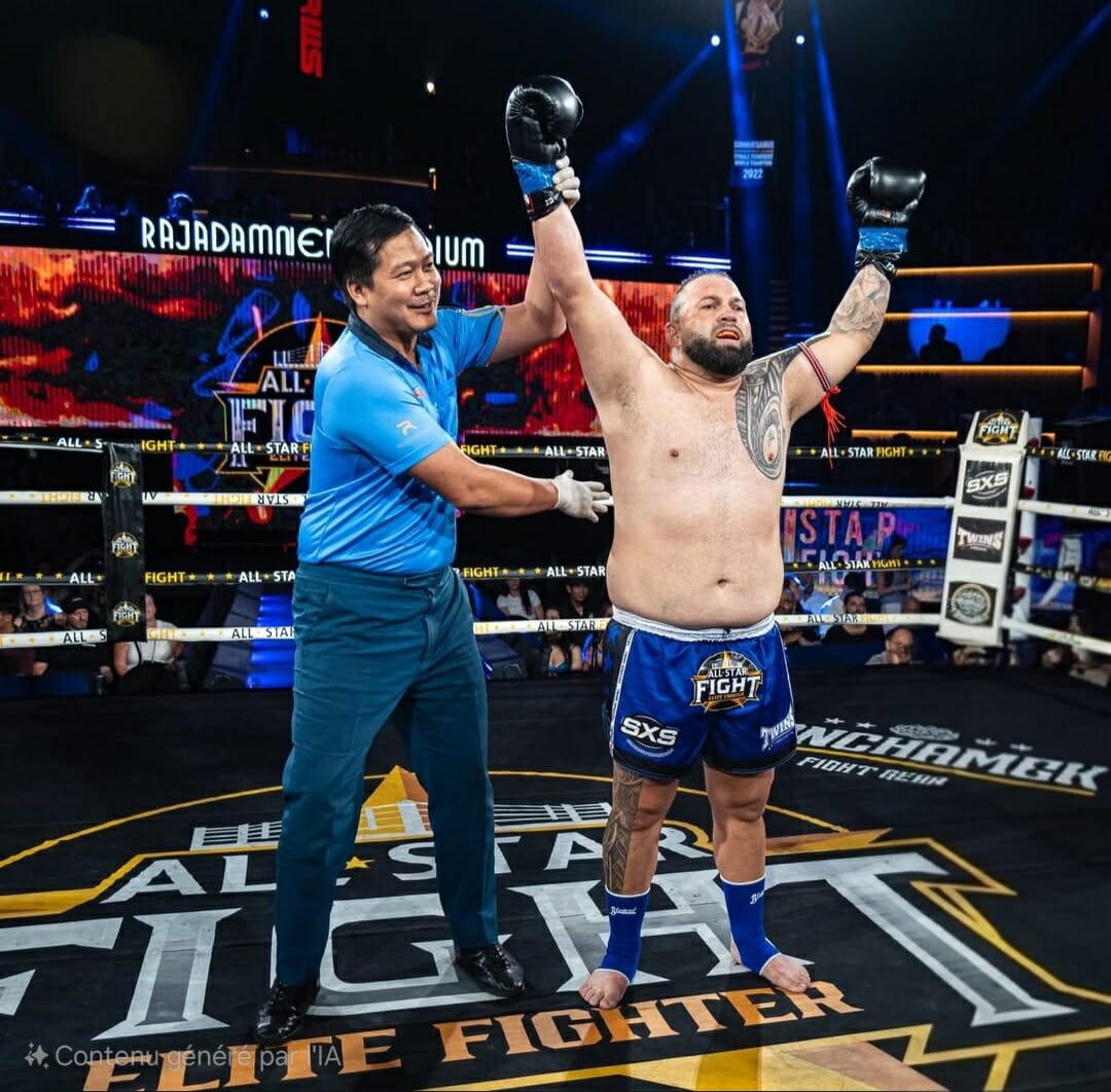 Antony Ferrère, combattant professionnel, a participé le 24 novembre 2025 à un évènement Muaythai en Thaïlande au All Star Fight, l'une des organisations "les plus prestigieuses" en boxe pieds poings. Le Réunionnais a affronté un Australien, Steven Fitzgerald, dans la catégorie des 110 kilos. Il a gagné par KO (Photo : Antony Ferrère)