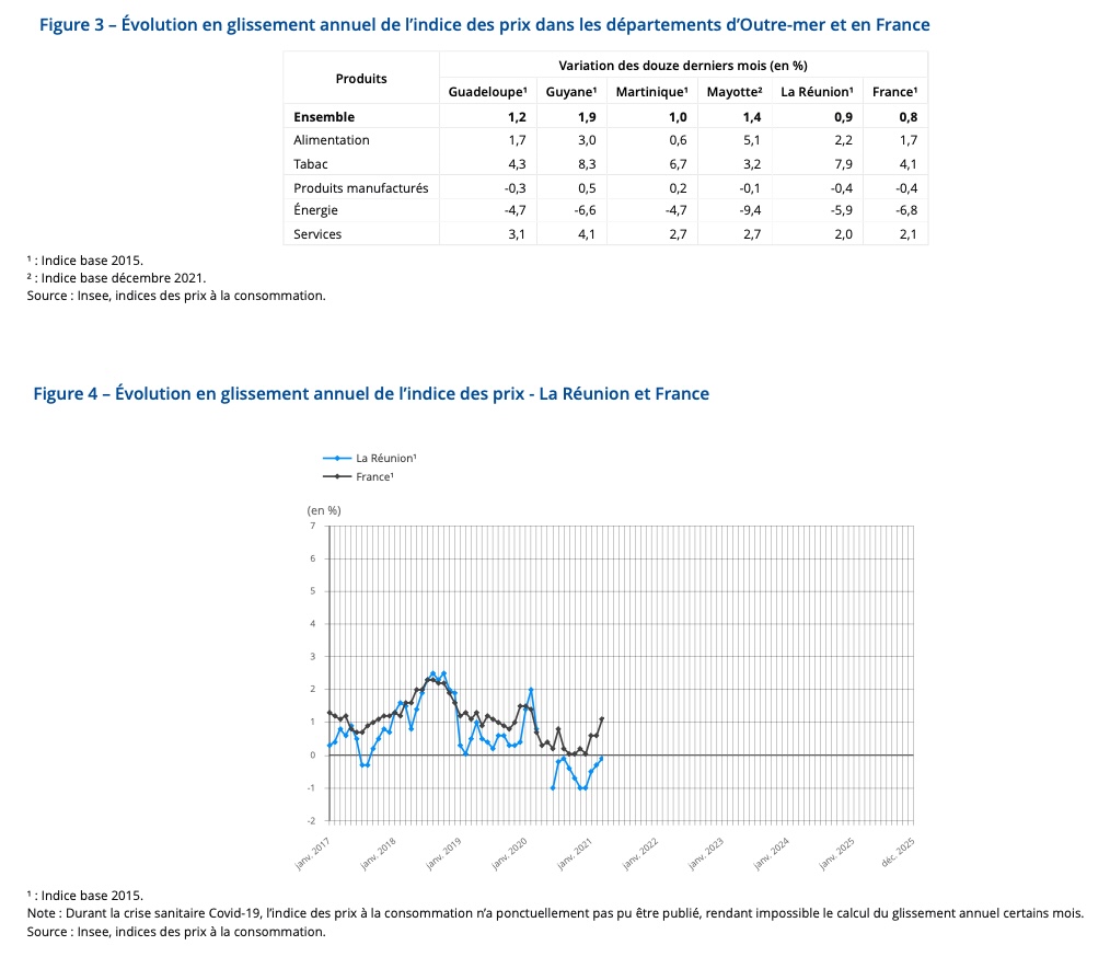 Les prix des services, de l’alimentation et du tabac augmentent sur un an à La Réunion, tandis que ceux des produits manufacturés et de l’énergie reculent.