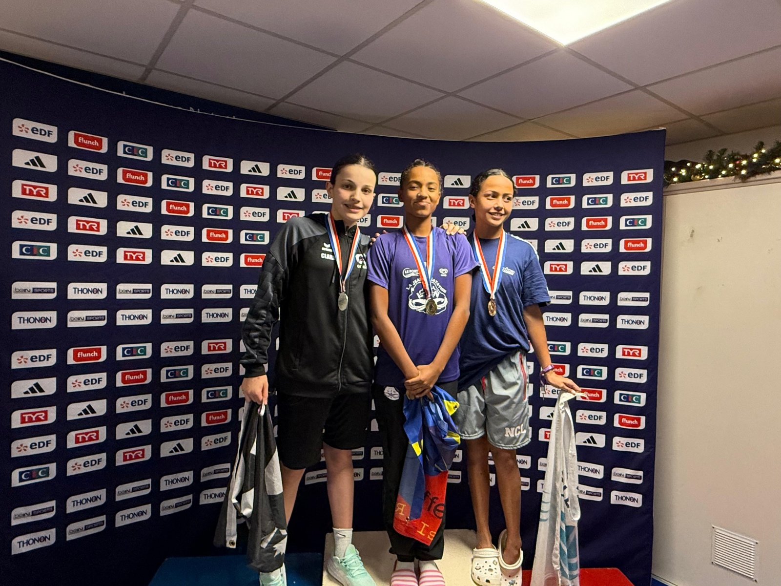 La Réunion a particulièrement brillé ce jeudi 18 décembre 2025 à Dunkerque lors de la première journée des championnats de France benjamins. La Dionysienne Anna Tsia King Fung (NSDR) a remporté deux titres de championne de France (catégorie 13 ans) sur le 50 mètres brasse (34.02) et le 50 mètres papillon (28.87). La Portoise Zoey Vidot (La Jeanne Natation - LJN) a été sacrée championne de France (catégorie 12 ans) sur le 100 mètres nage libre (01.02.72) (Photo : www.imazpress.com)