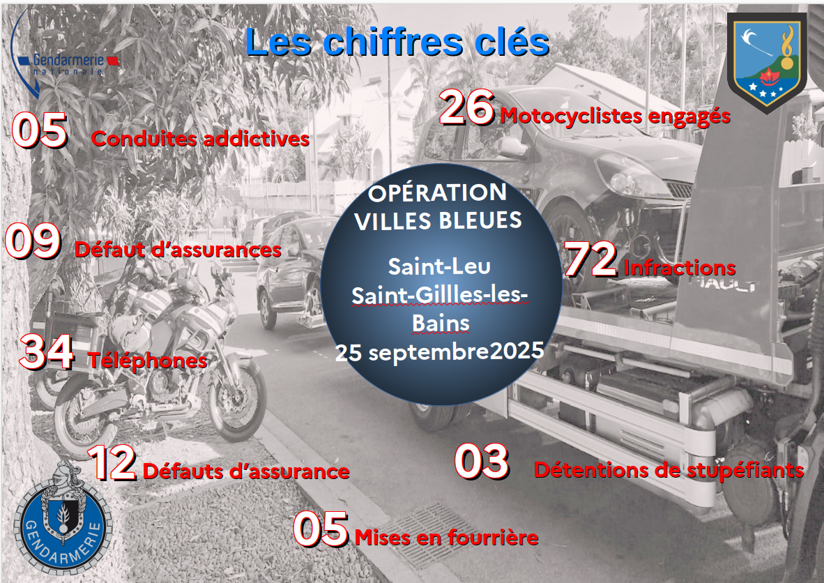 Ce jeudi 25 septembre 2025, 26 motocyclistes de l’Escadron départemental de sécurité routière (E.D.S.R), ont réalisé une opération "Ville Bleue", à Saint-Gilles. Au total, 5 véhicules ont été mis en fourrière et 72 infractions ont été constatées, soit : (Photo d'illustration rb/www.imazpress.com)