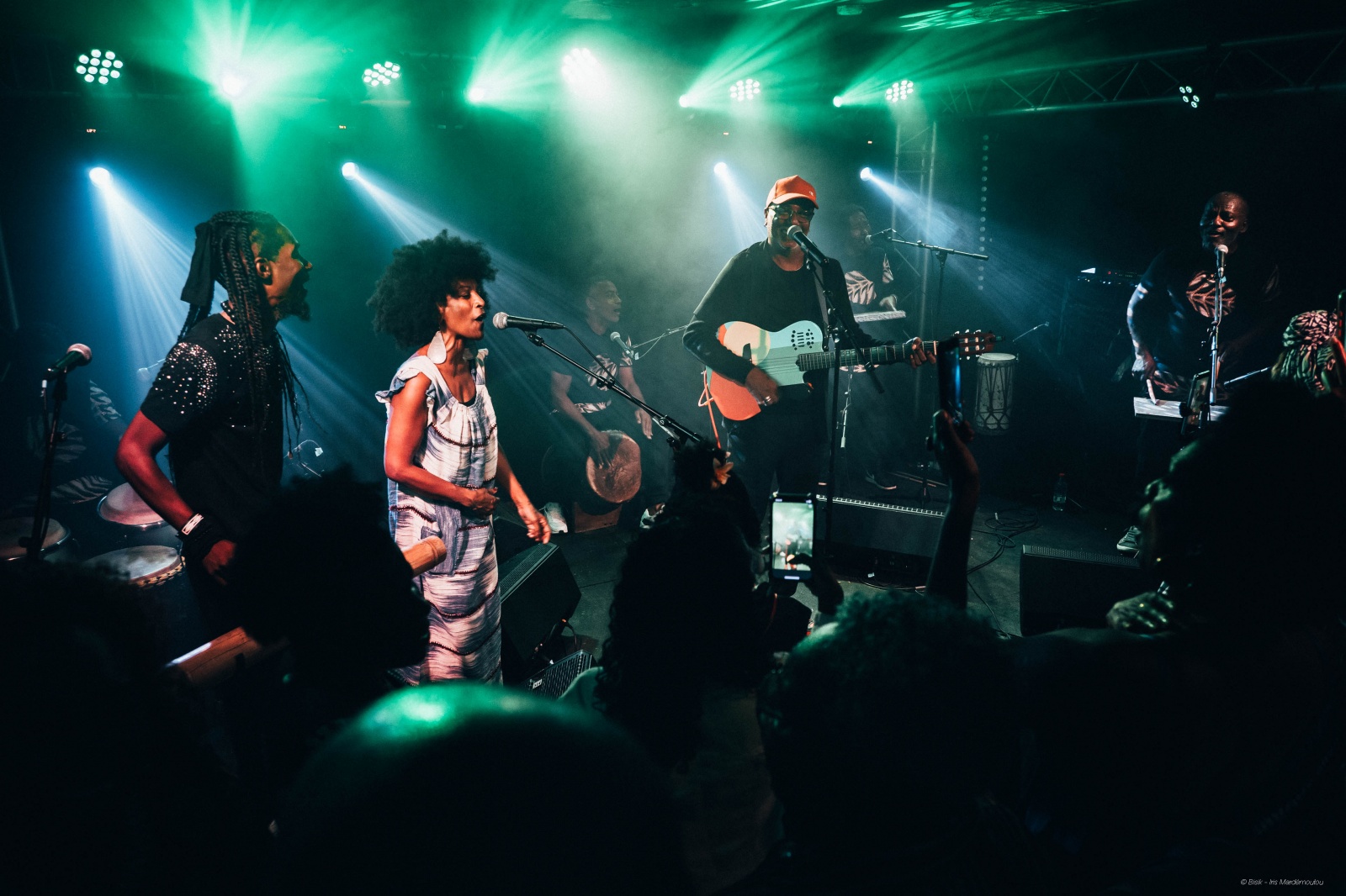Un changement de plateau rapide et c’est Tinom Lélé, digne héritier de son père, qui vient portre sur scène la mémoire vivante de Gramoun Lélé. Avec Willy Moinache, Jordan Moutoussamy, Davy Florance et Maeva Elie, Tinom fait vibrer les chansons comme une prière : le public bascule dans une véritable communion, porté par des titres incontournables comme Soléyé, ou Palto to fé qui unissent toutes les générations.