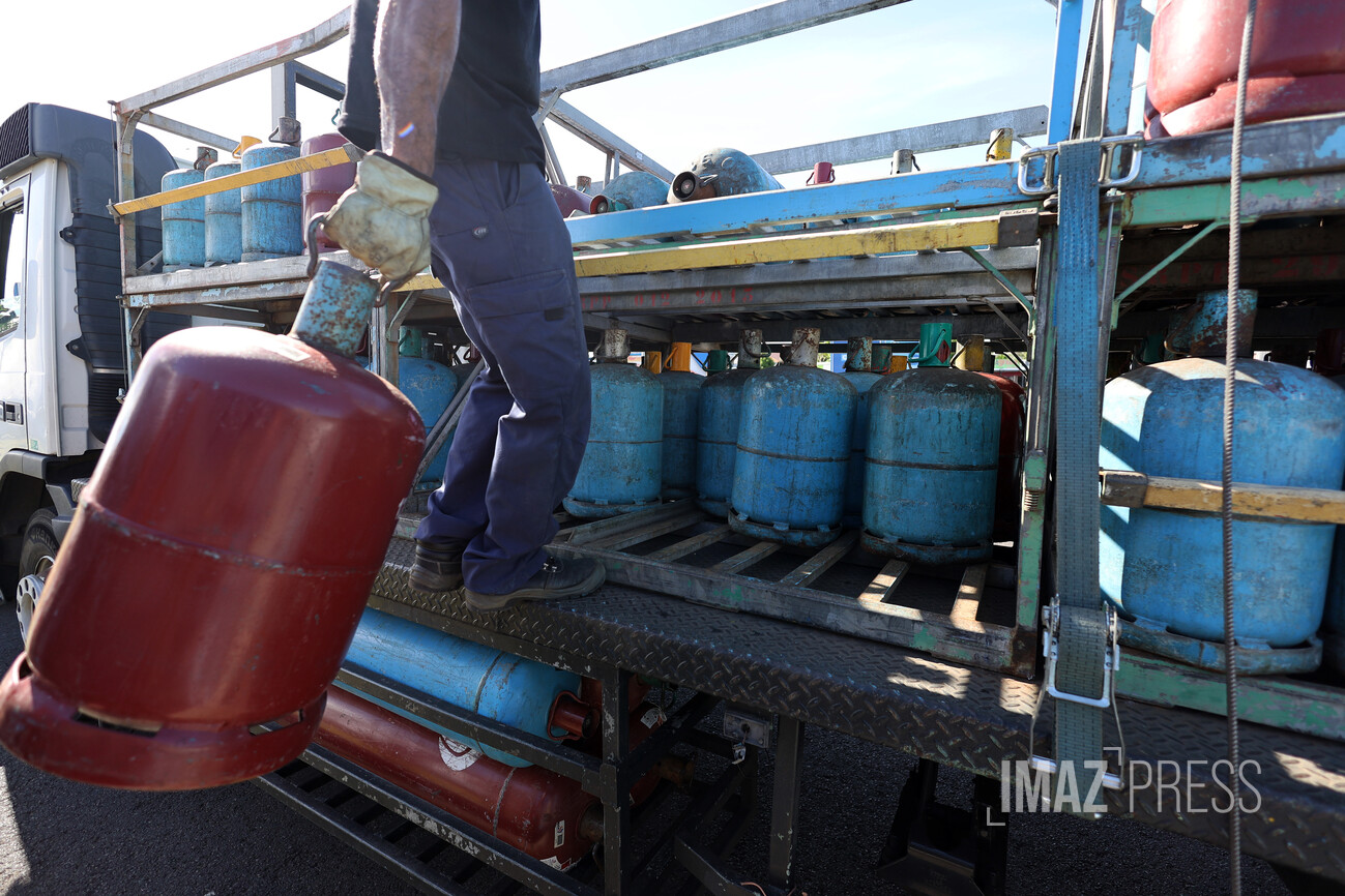 Le contexte international et la guerre en Iran poussent certains Réunionnais à faire des stocks de bouteilles de gaz. Une surconsommation qui crée des ruptures de stock, temporaires, dans les stations-service de l'île. La Société réunionnaise des produits pétroliers (SRPP) assure pourtant qu'il n'y a pas de difficultés d'approvisionnement, pas de pénurie non plus. La SRPP note : "une hausse inhabituelle de la demande en gaz en bouteille" et demande aux consommateurs "d'adopter un comportement d’achat responsable et d'éviter toute constitution de stocks excessifs" afin de ne pas pénaliser les autres clients. (Photo : Stephan Laï-Yu/www.imazpress.com)
