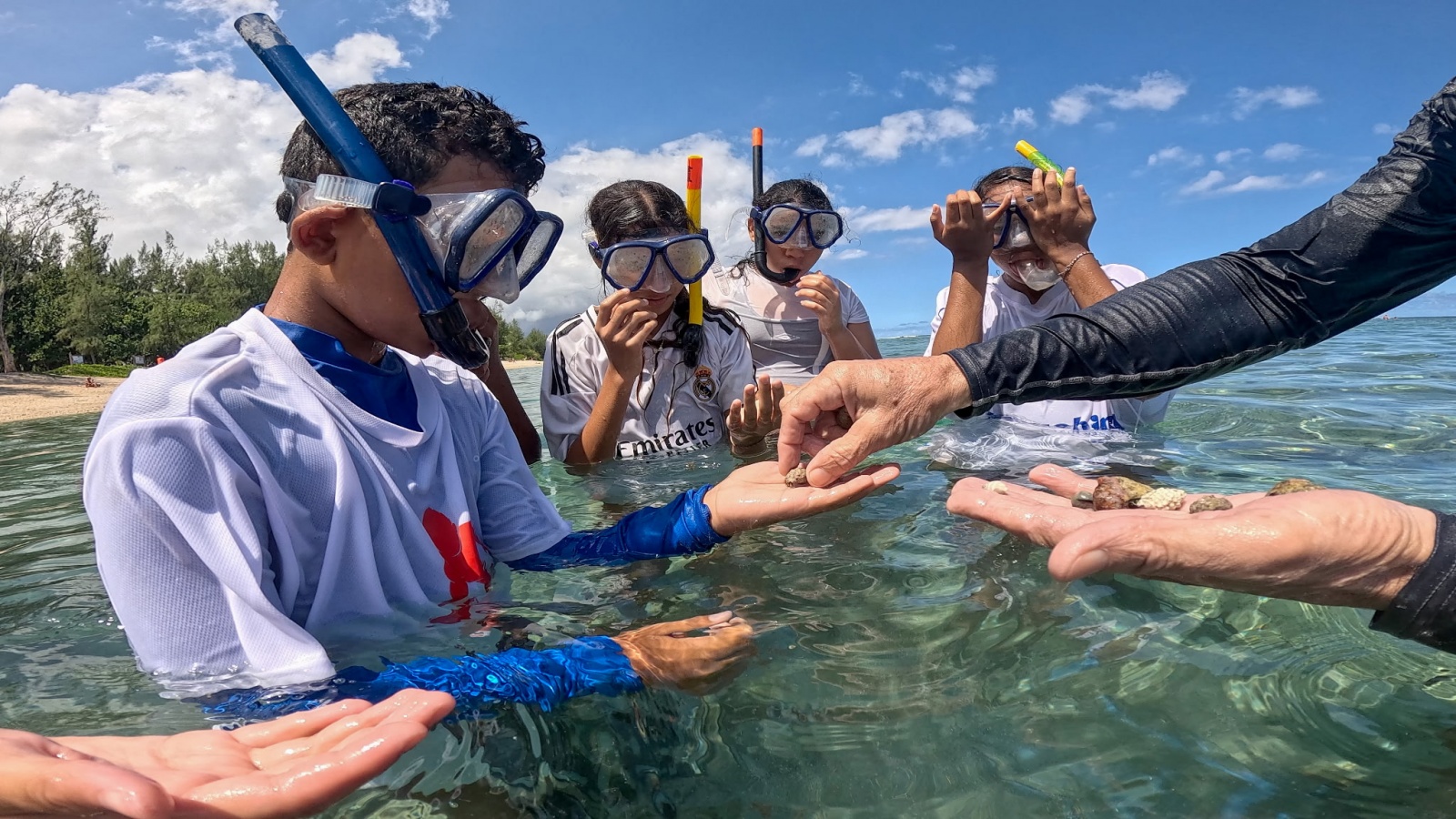 Peu familiers du milieu marin pour la plupart, les élèves ont eu l’opportunité de partir à la rencontre de la biodiversité du lagon. Encadrés par un professionnel, ils ont parcouru le sentier sous-marin de l’Ermitage, observant poissons, coraux et autres espèces emblématiques.