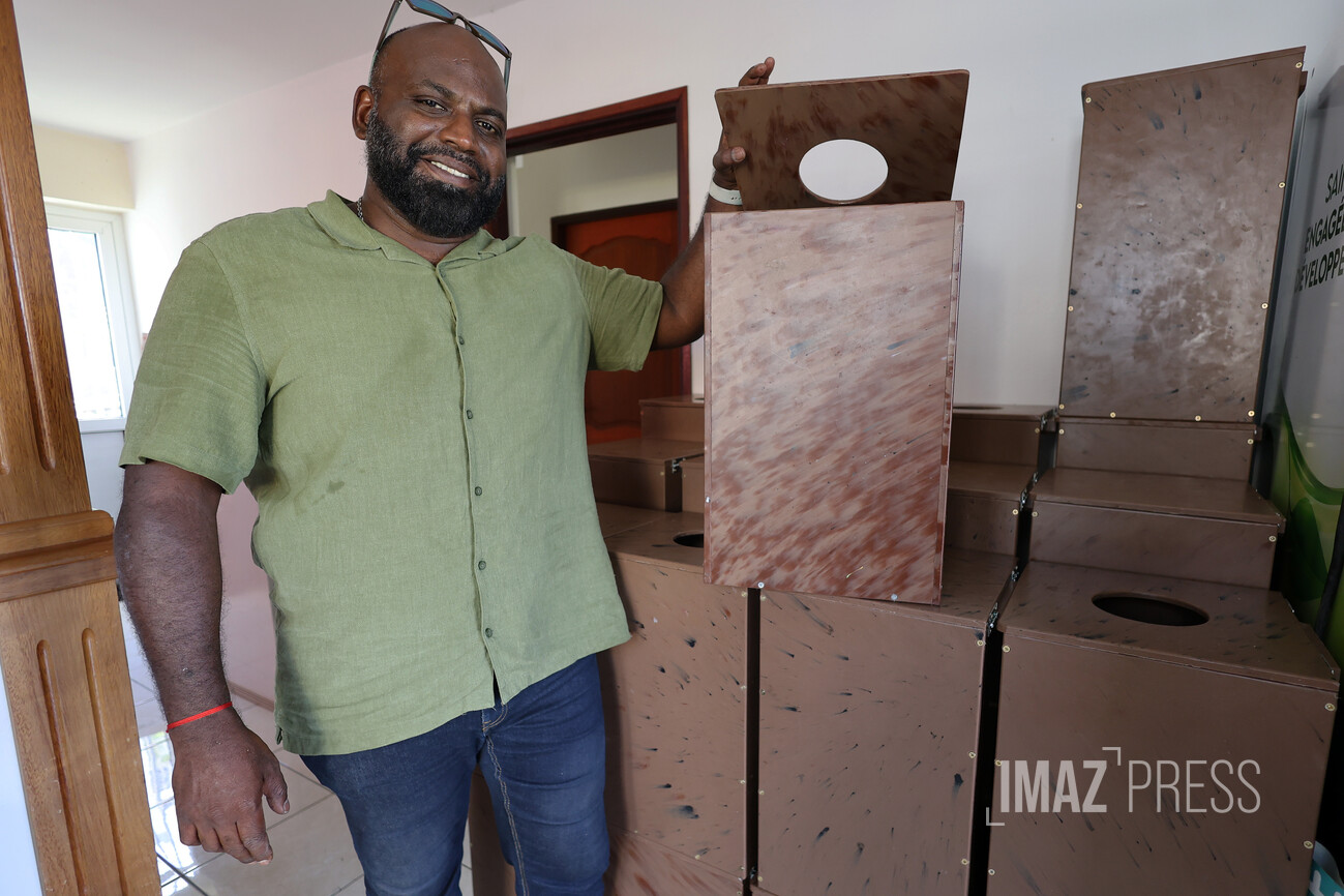 À compter de ce mercredi 17 décembre 2025, des corbeilles de tri fabriquées en plastique recyclé vont être distribuées à plusieurs locataires de logements sociaux. Les premiers à en bénéficier se trouvent au Port. Par la suite, ce sera en tout une centaine de logements qui seront équipés. Ces récipients destinés au plastique, verre et déchets ménagers, ont été créés à partir de poubelles jamais utilisées et recyclées (Photos : sly/www.imazpress.com)