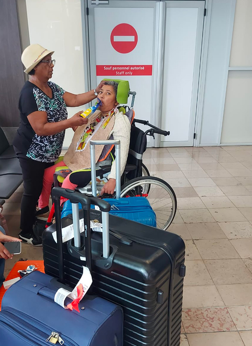 Billets pour Maurice réservés depuis le mois d'août, c'est seulement le jour du réveillon – alors que la famille s'apprête à célébrer le Nouvel An à Maurice – que la compagnie refuse l'embarquement de la femme porteuse de handicap, dont le fauteuil est équipé d'une coquille.