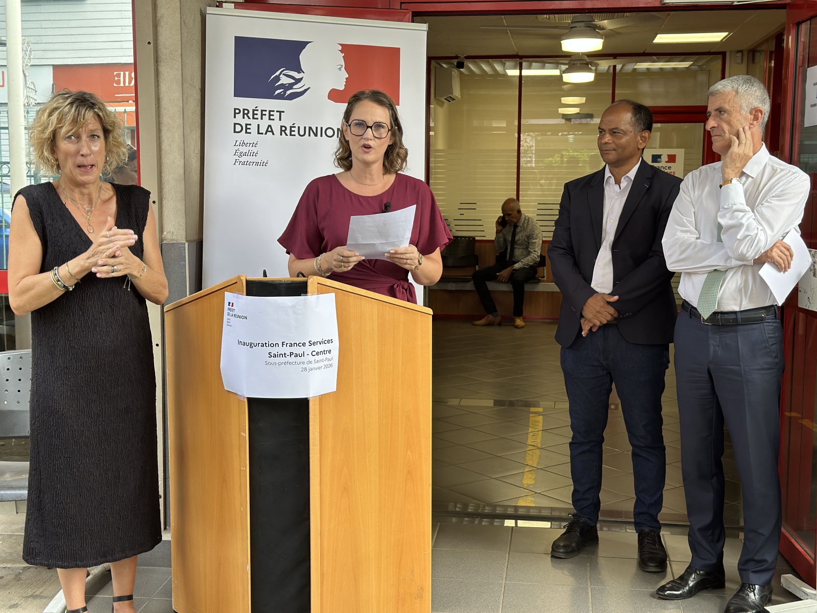 Ce jeudi 29 janvier 2026, les services de l'État ont inauguré un nouveau bureau France Services à Saint-Paul, dans les locaux de la sous-préfecture de la ville. Vous avez une question sur vos démarches administratives ? "Il y a toujours un conseiller France Services pour vous aider à moins de 20 minutes de chez vous." C'est en tout cas la promesse du gouvernement. En 2025 à La Réunion, France Services a procédé à 155 000 accompagnements. Nouveauté cette année, ce bureau est en mesure d'accompagner les personnes sourdes et malentendantes. ( Photo : Préfecture de La Réunion)